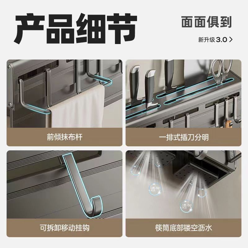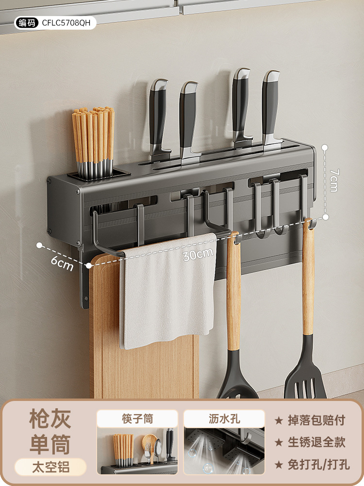 alumimum gun gray knife holder 30cm [block cutting board + rag rod + single barrel +6 hooks]]