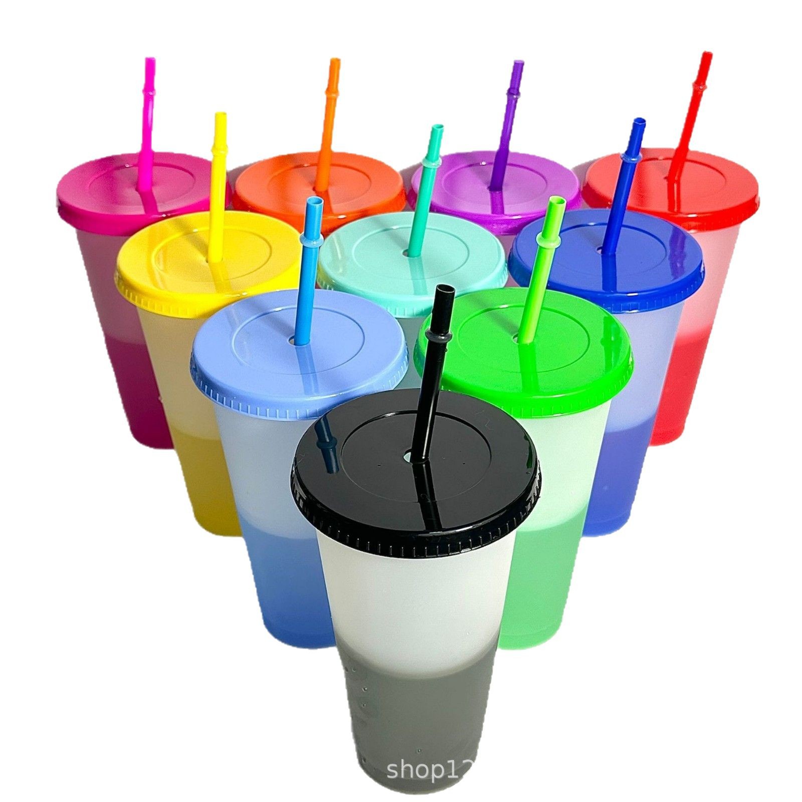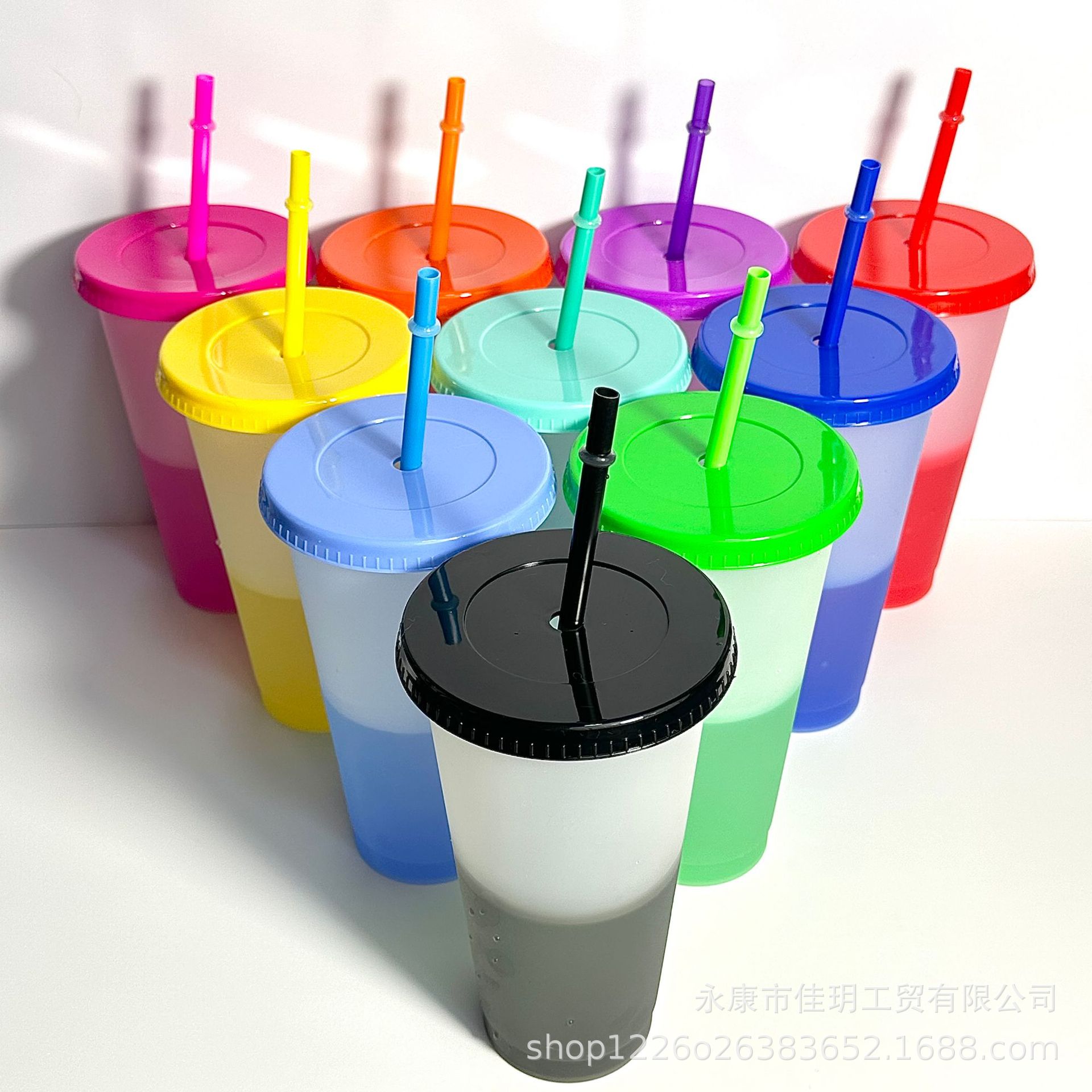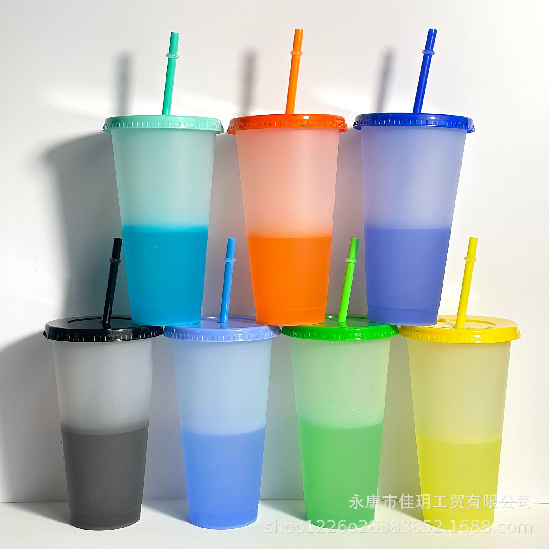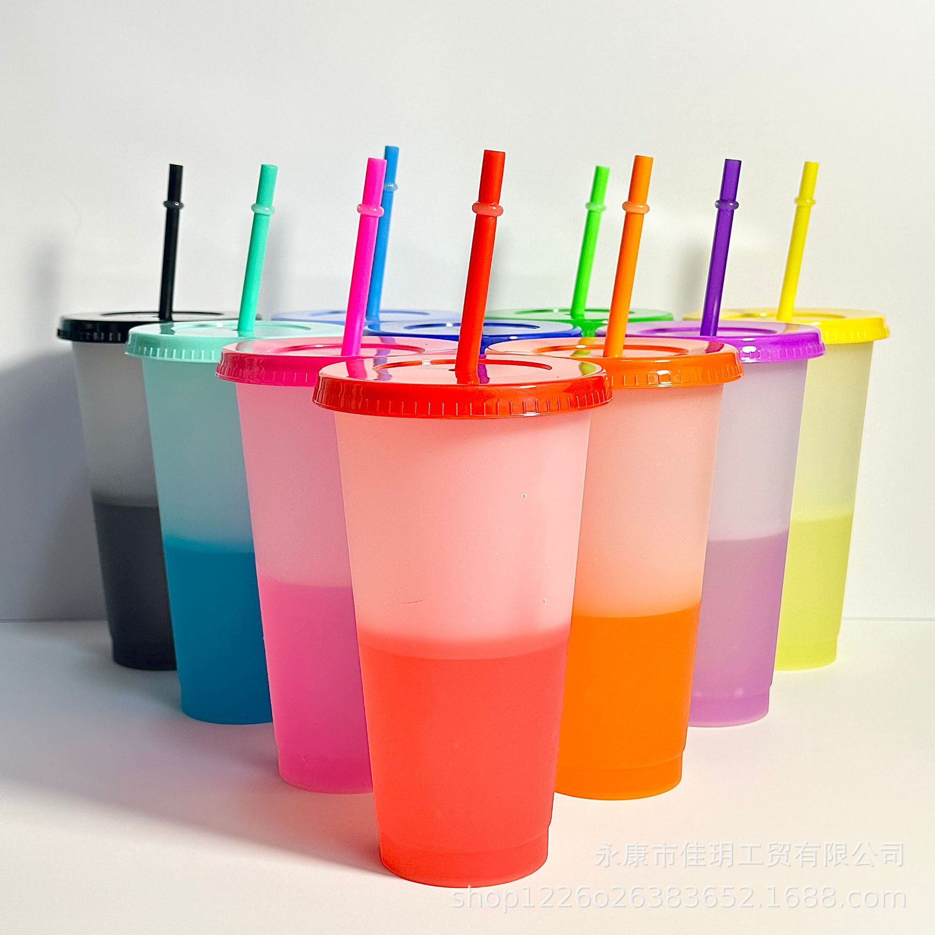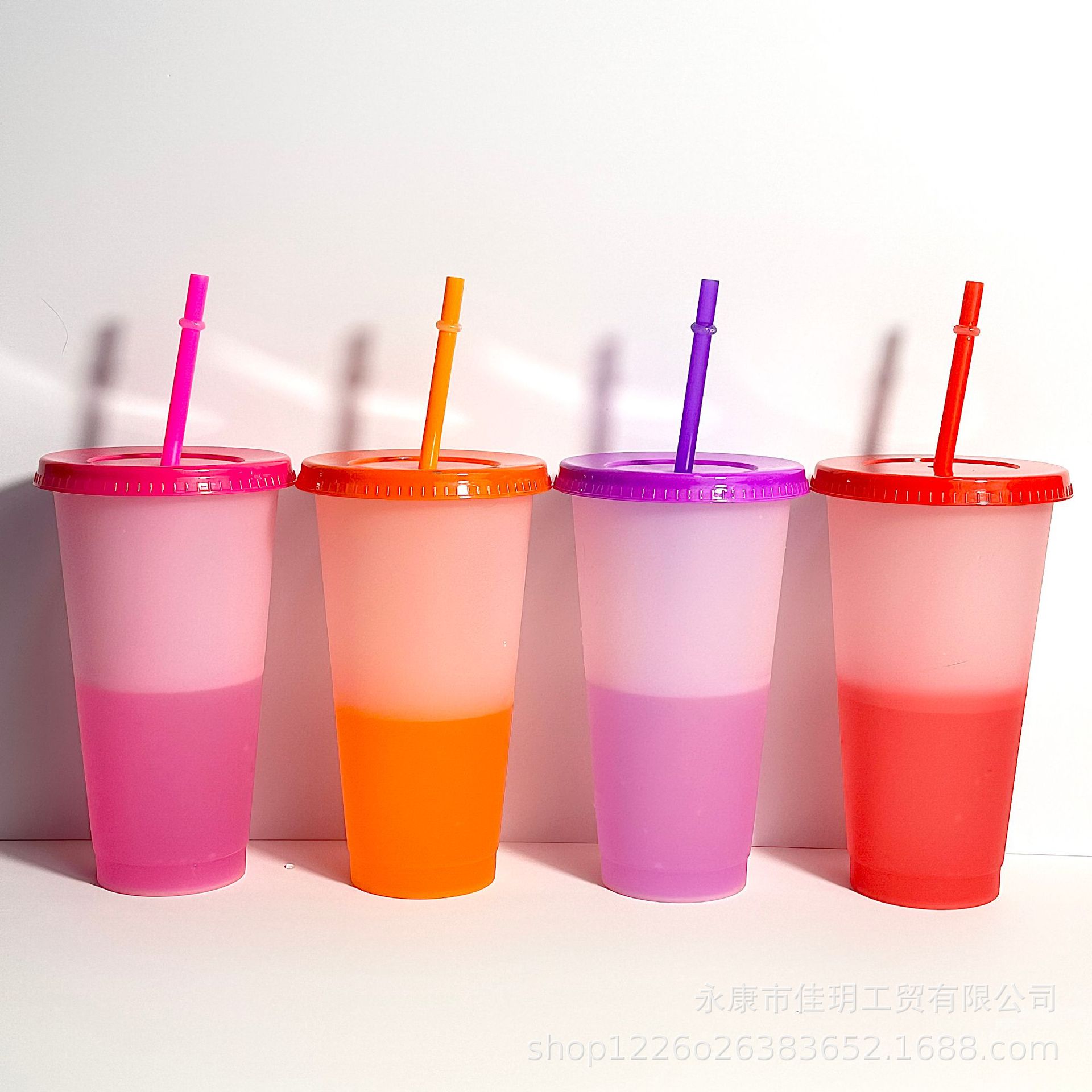 summer hot 710ml large capacity plastic water cup 24ozpp material with straw temperature sensing and cold discoloration cup