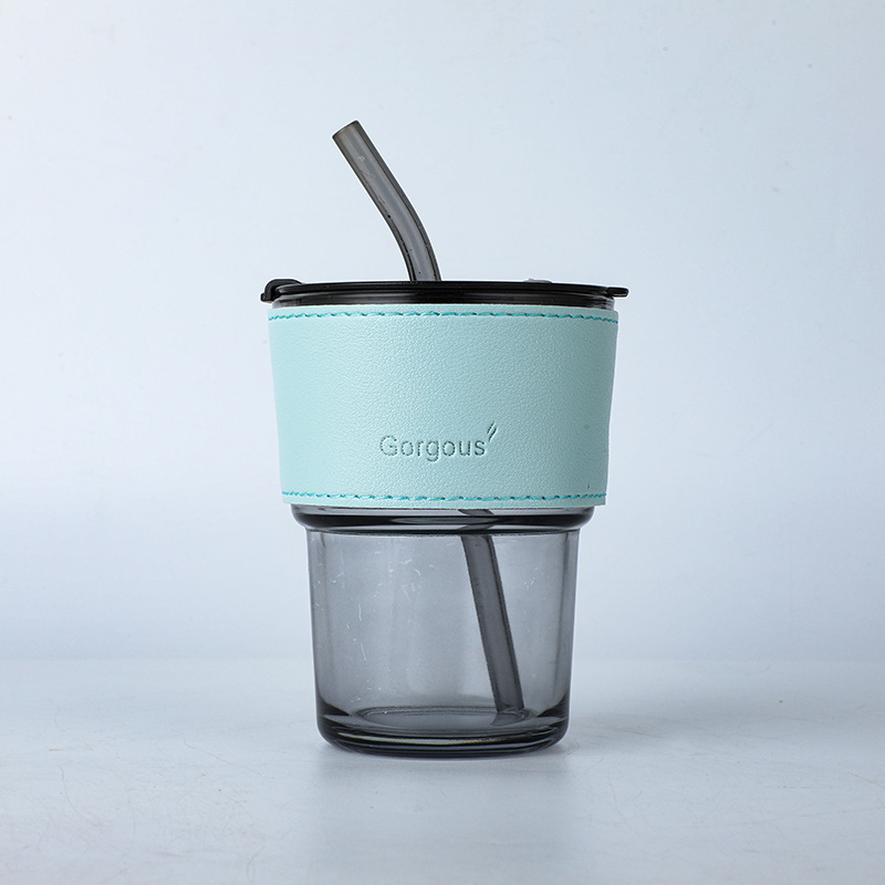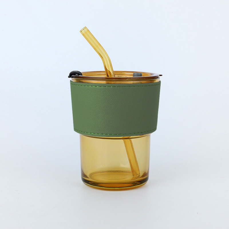 coffee cup opening gift glass bamboo joint cup with lid and straw household female wholesale drinking cup customized logo