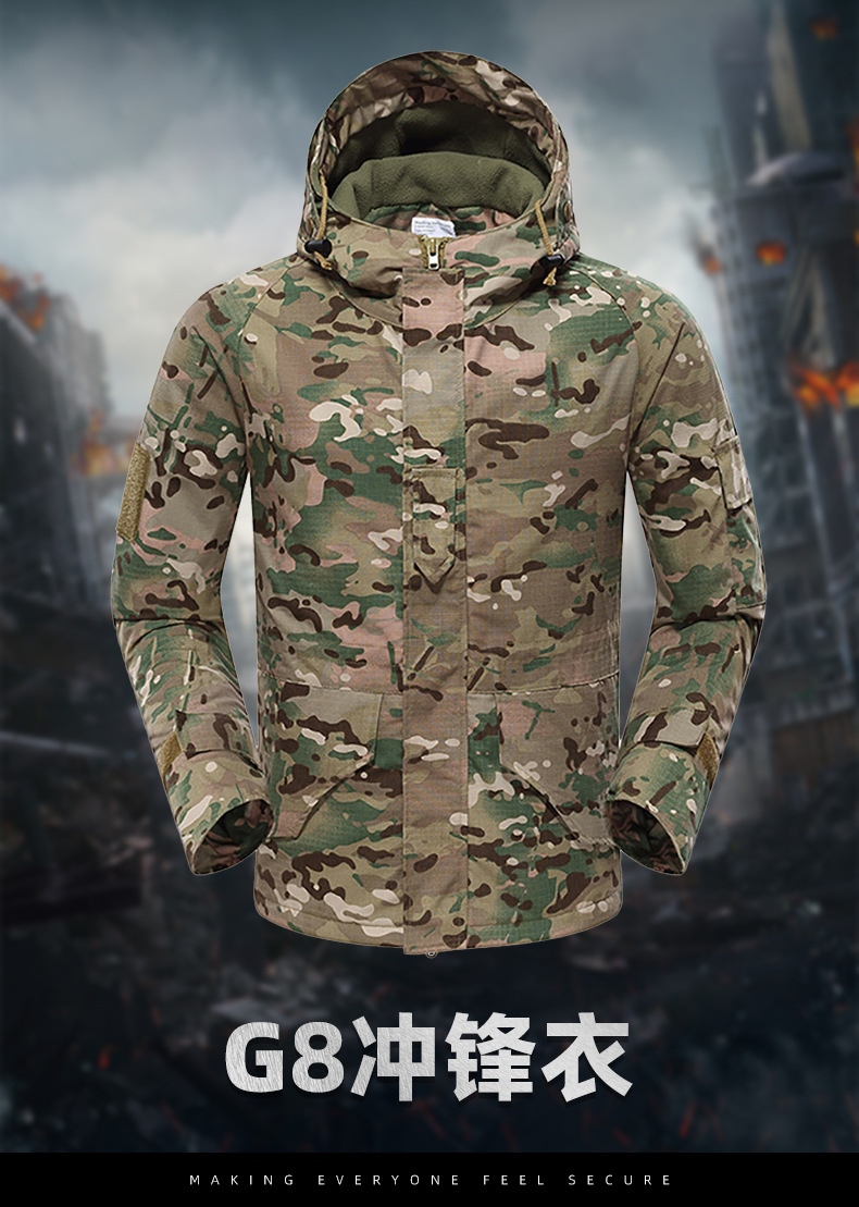 g8 tactical shell jacket outdoor men's camouflage windproof hood mountaineering clothing mc camouflage field fleece plaid jacket