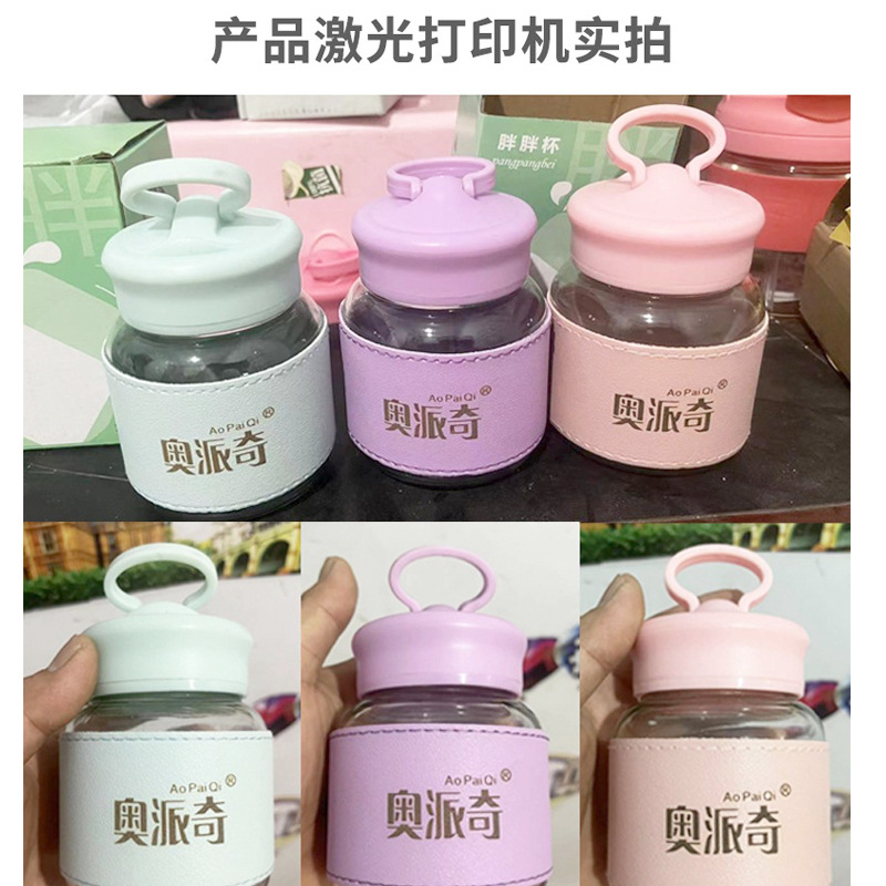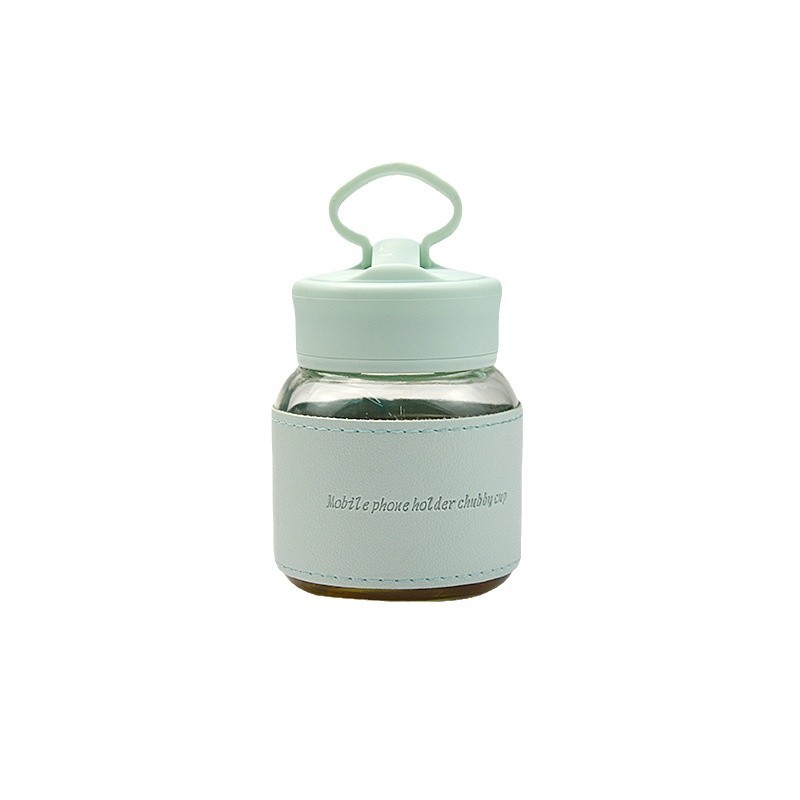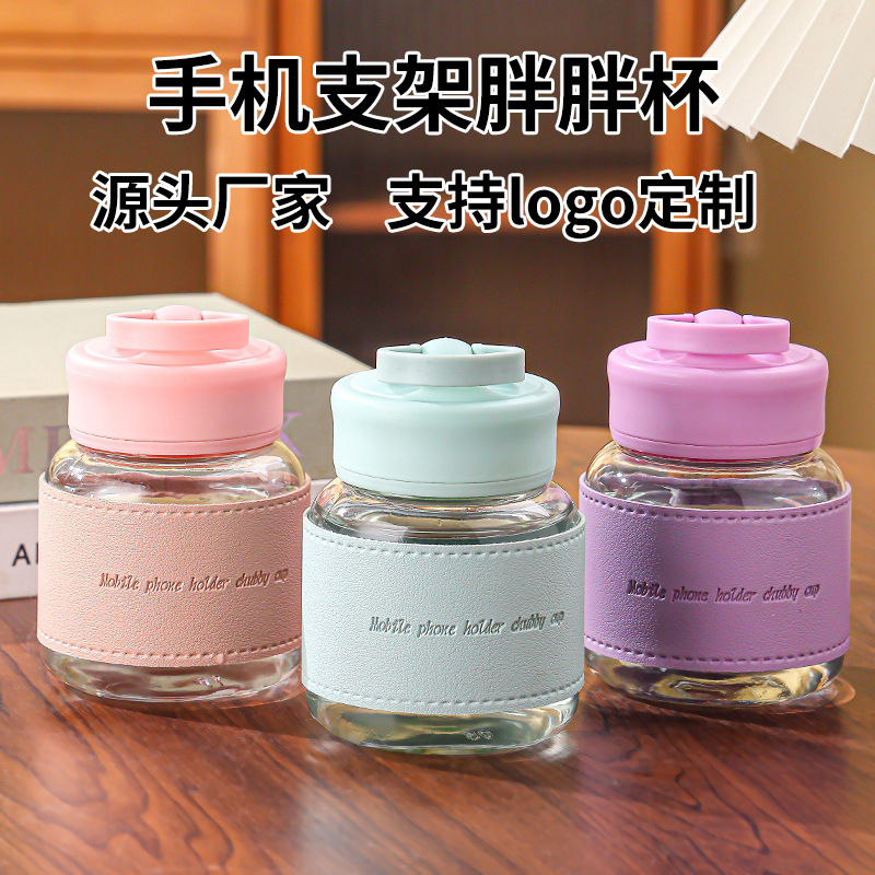 glass good-looking fat water cup portable handle mini soybean milk advertising gift cup mobile phone bottle with stand