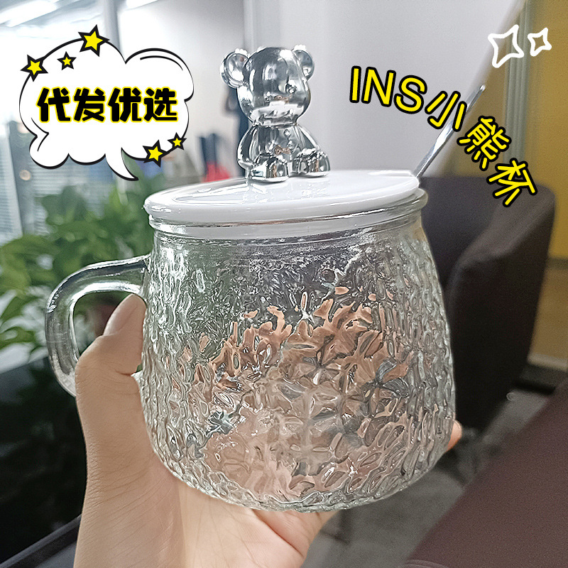 bear cake towel mug glacier pattern glass water cup simple juice drink coffee cup tea cup promotion gift cup