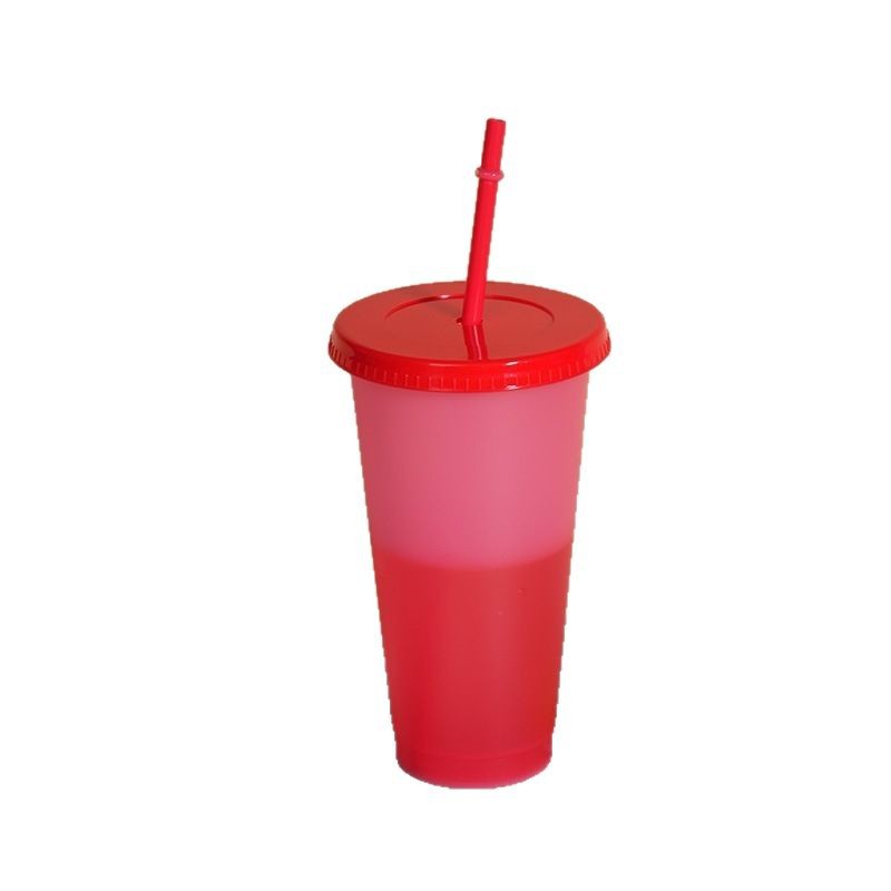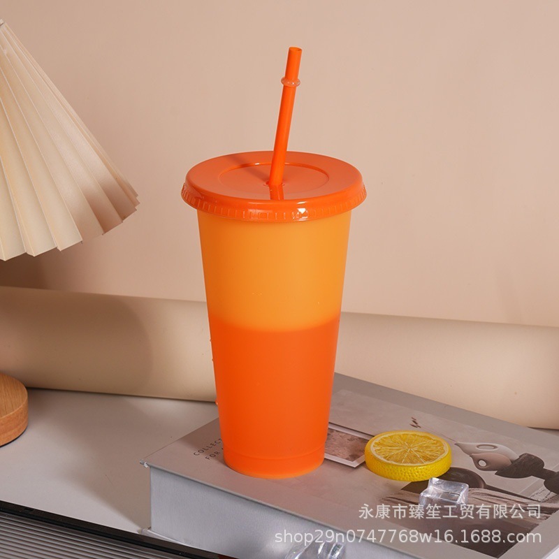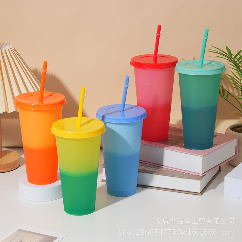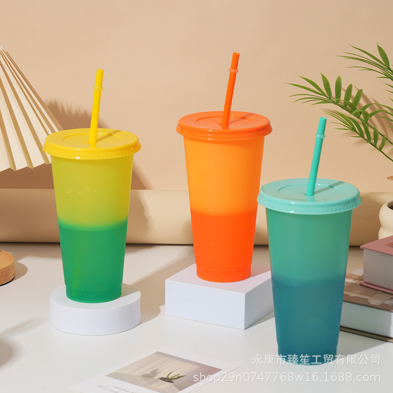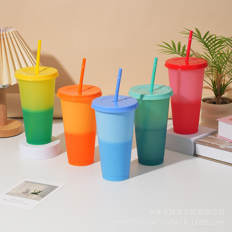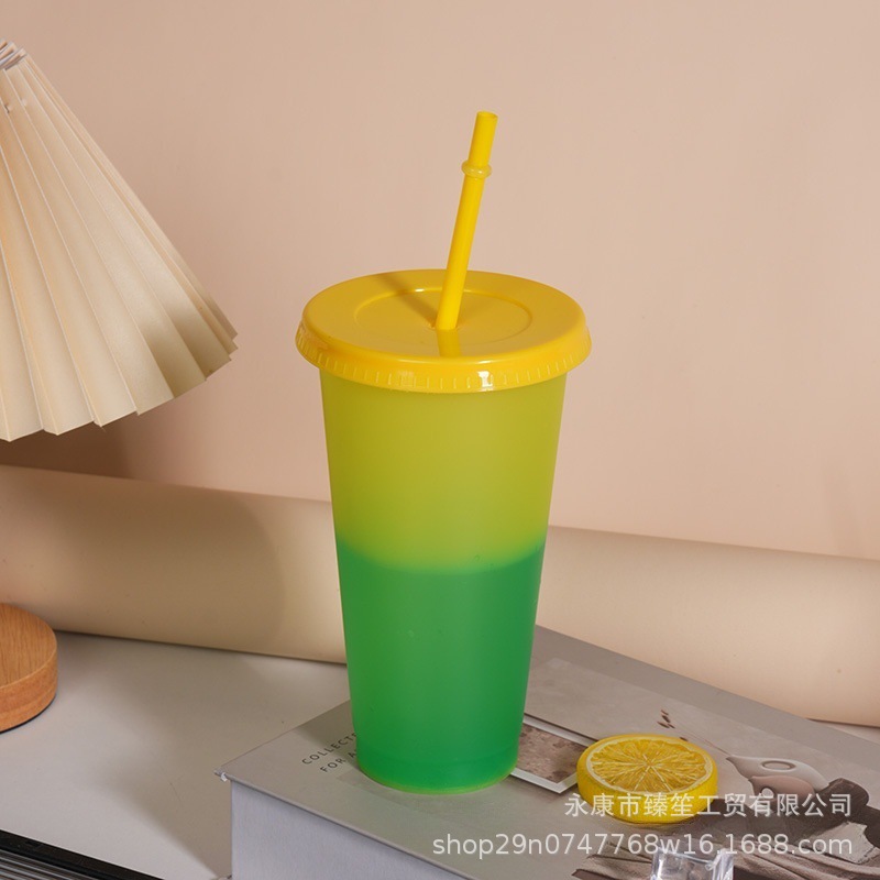 new discoloration cup pp material temperature-sensitive color-changing plastic cup simple cup with straw 710ml logo factory direct output