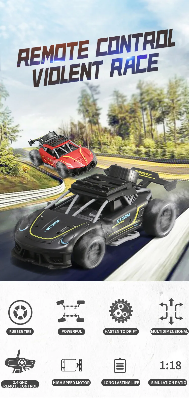 Product Name: | 2.4g 1/18 Rc Car Cool Light Racing Car Toys Remote Control Alloy Body Car Interesting Gifts For Children |