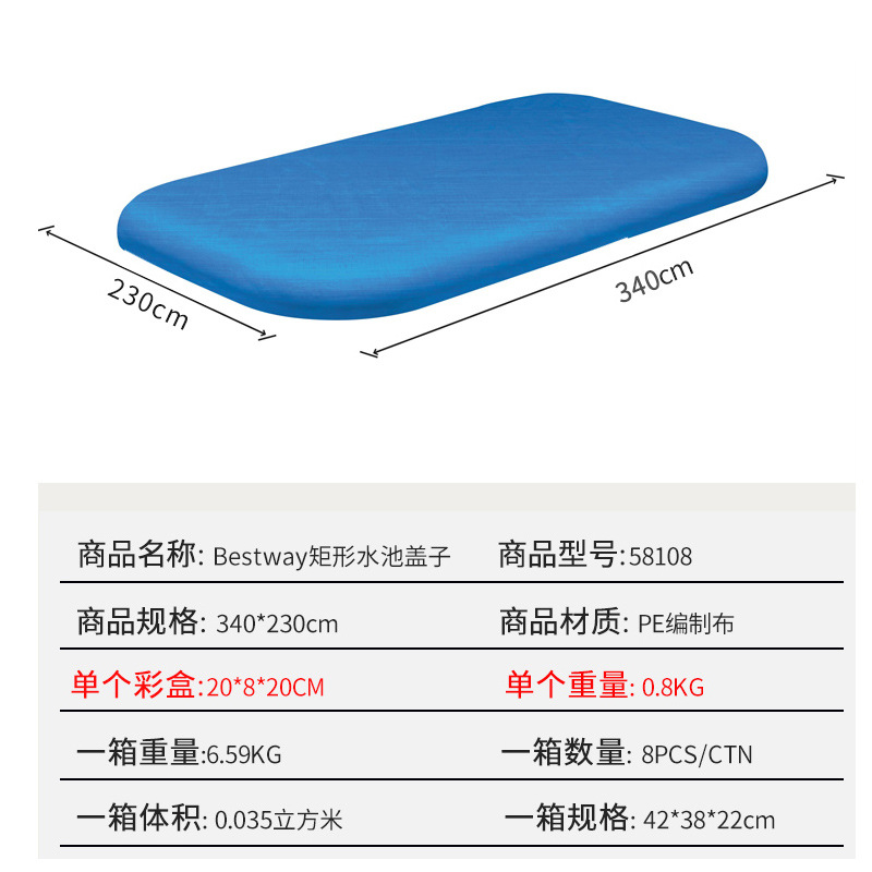 Bestway 58108 Pool LidSuitable for 305*183*56cm, or dimensions similar to 54009Individual packaging size: 20*8*20CM,Single weight: 0.9KG