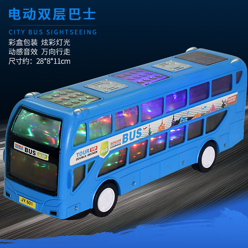 blue double deck bus