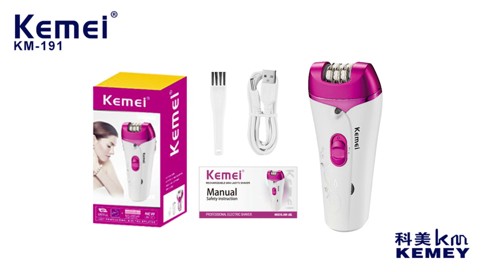 kemei km-191 usb charging women's shaver two-gear power adjustment mini design cutter head detachable