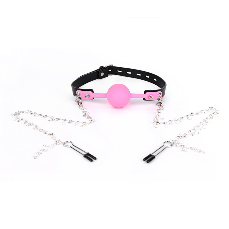 pink mouth ball + nipple clamp