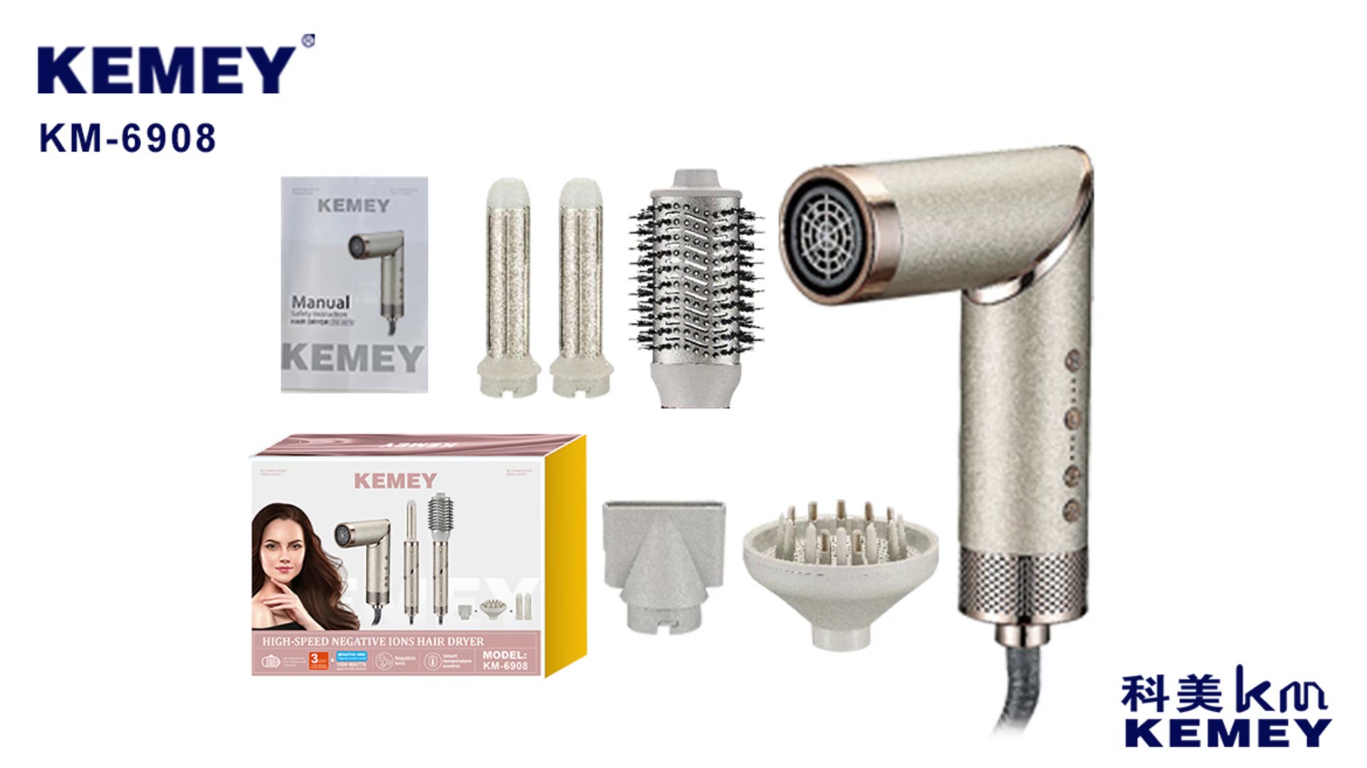comei km-6908 all-in-one converter folding hair dryer airflow curly hair design 3-gear temperature accessories complete