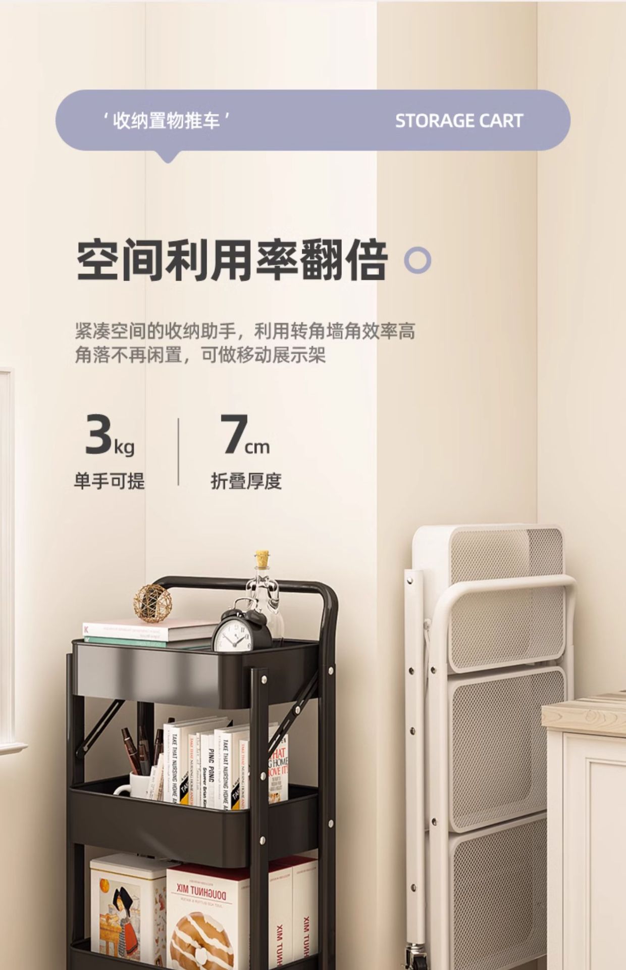 no arm rest folding trolley white【 installation-free open-and-use]]