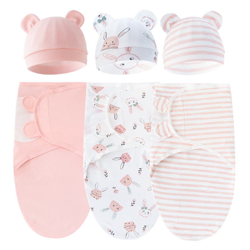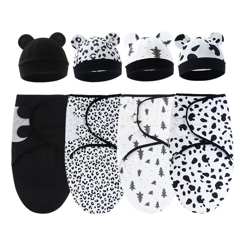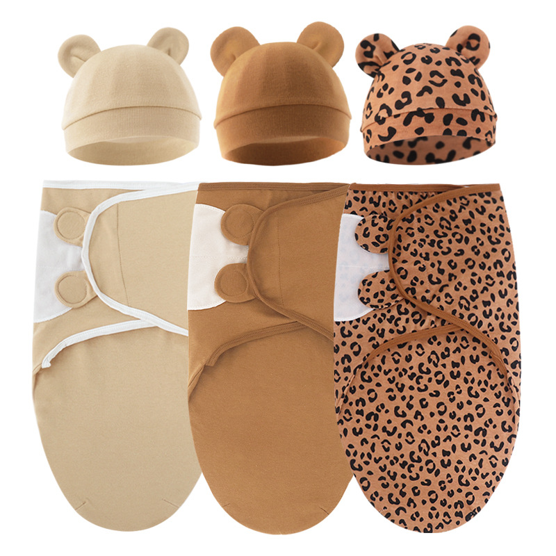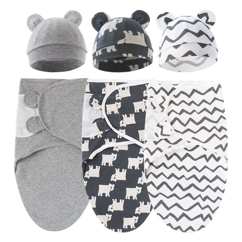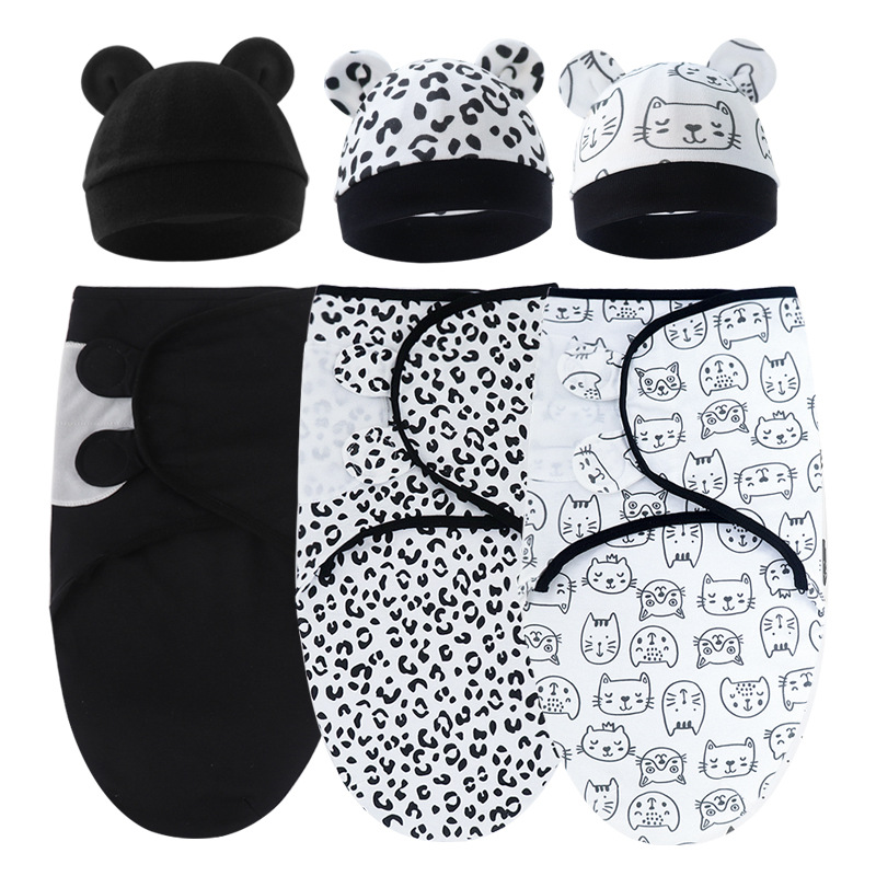 animal world (baby swaddle + white hat