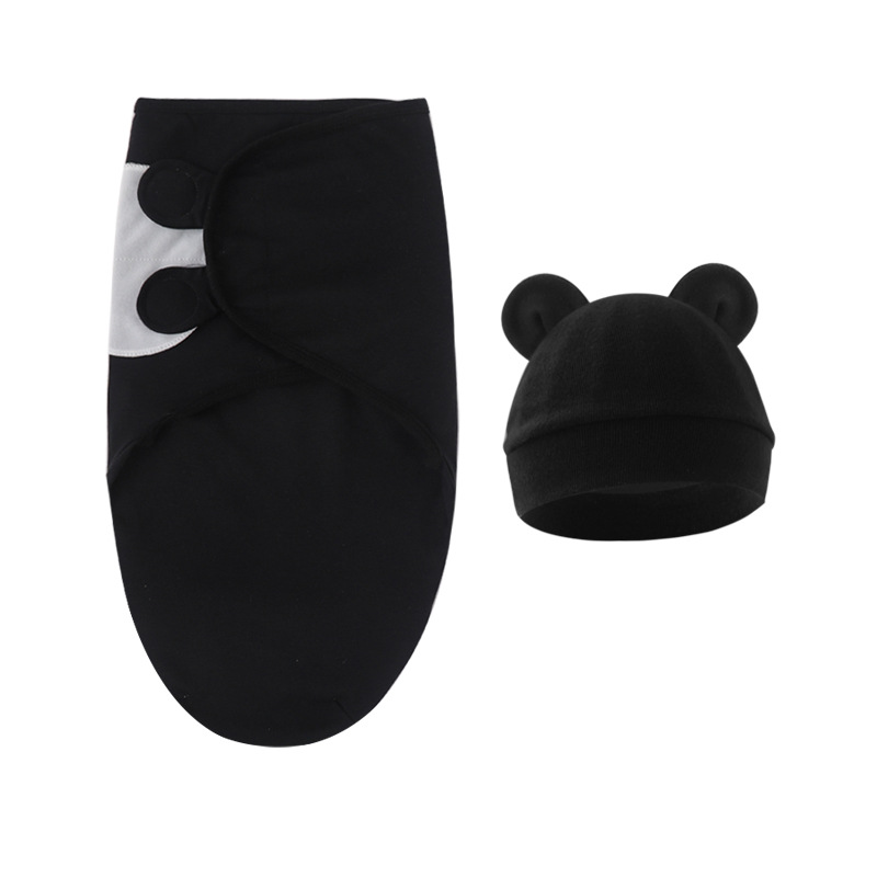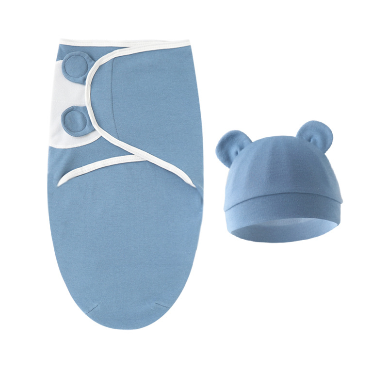bear (baby swaddle + navy blue edge hat)