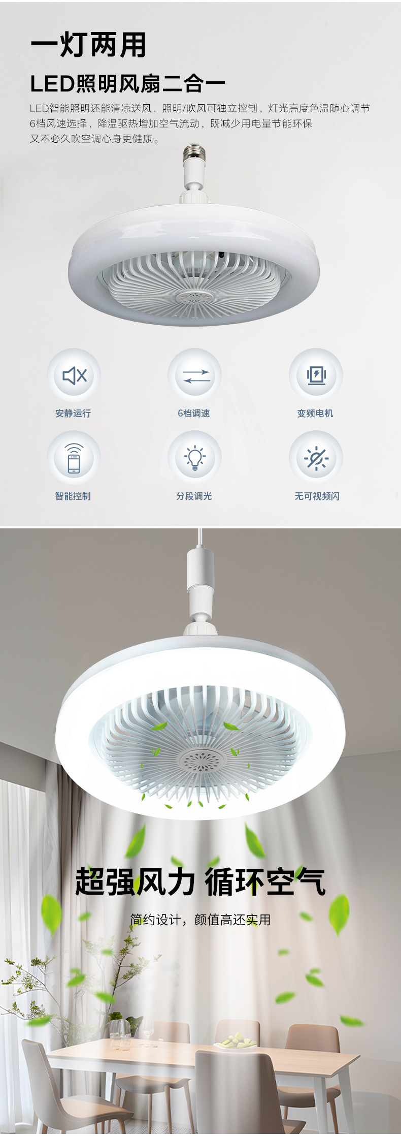 factory direct supply 5-leaf fan lamp two-color ceiling fan household living room study bedroom ceiling small led fan light fan lamp