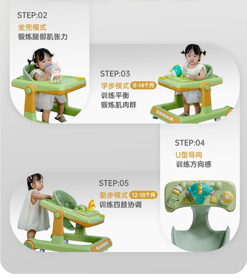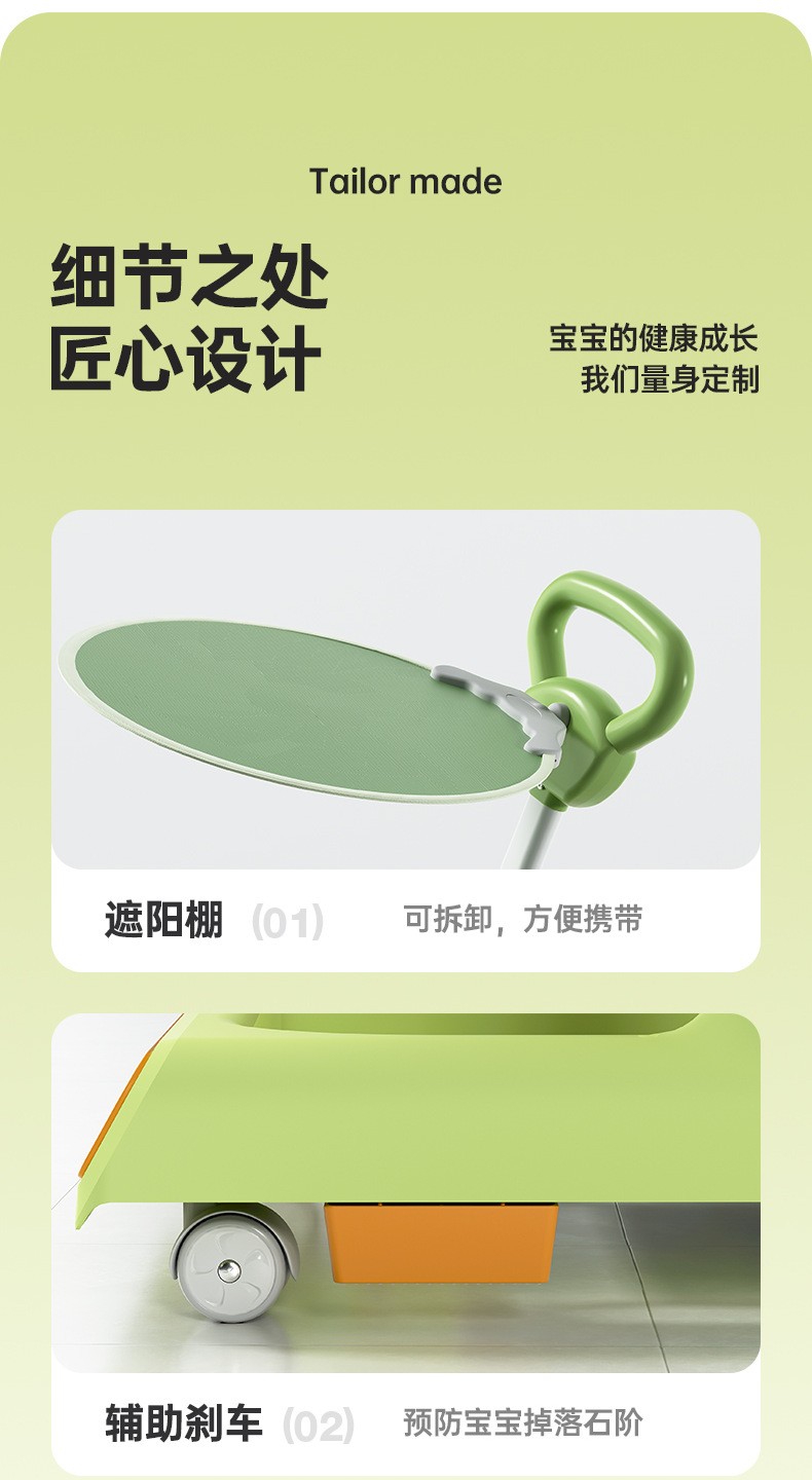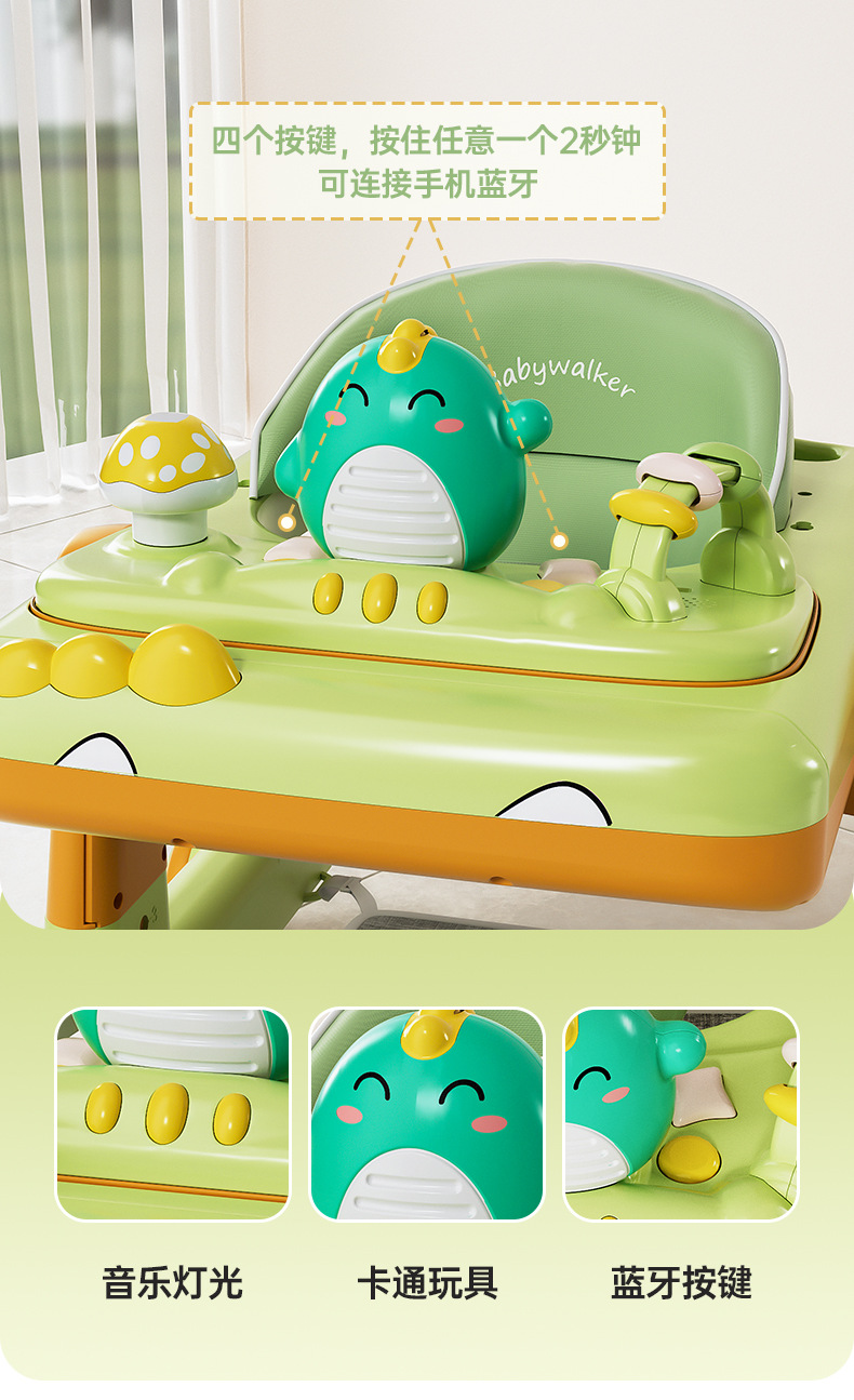 green + music + foot pad + push handle + canopy (no bluetooth)