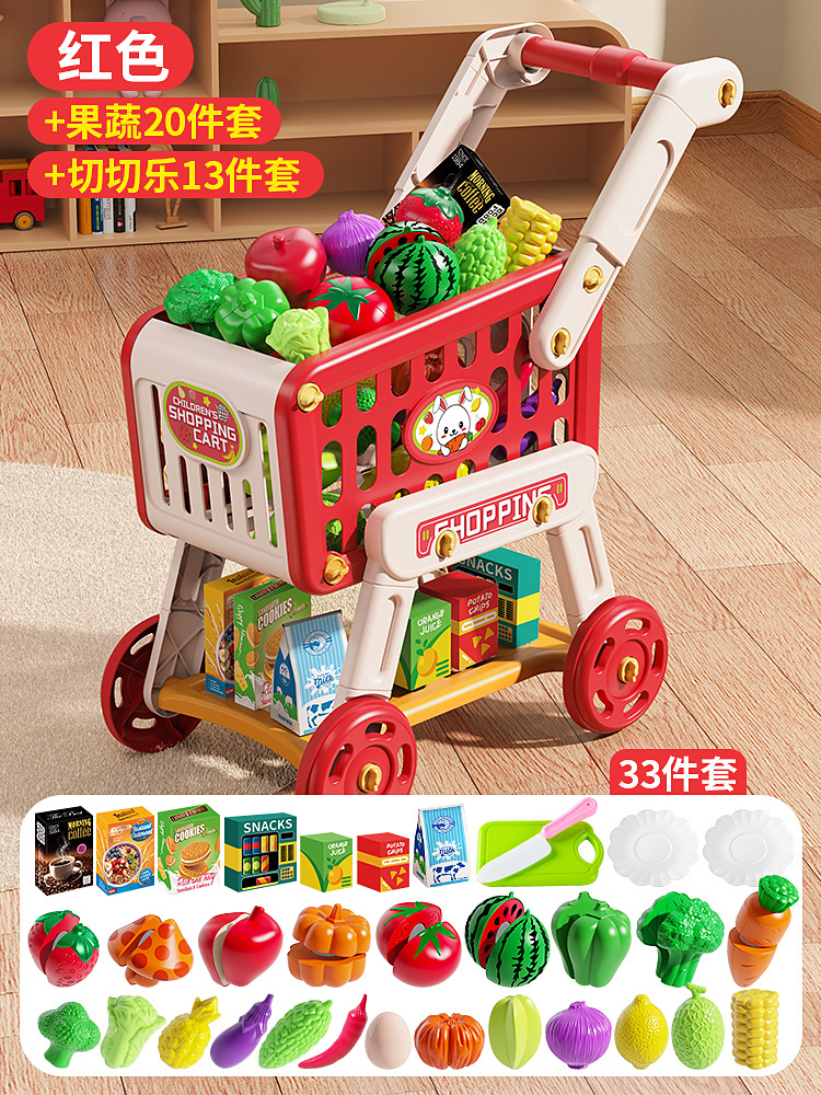 deluxe edition [red] simulation shopping cart +20 fruits and vegetables +13 slicer