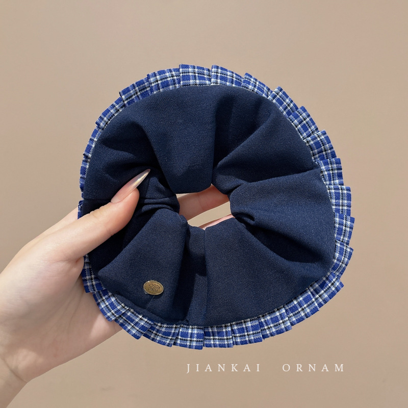 3# denim hair ring-plaid ribbon
