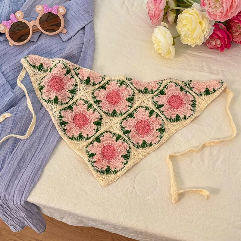 5# red flowers [colorful flowers] triangle shawl.