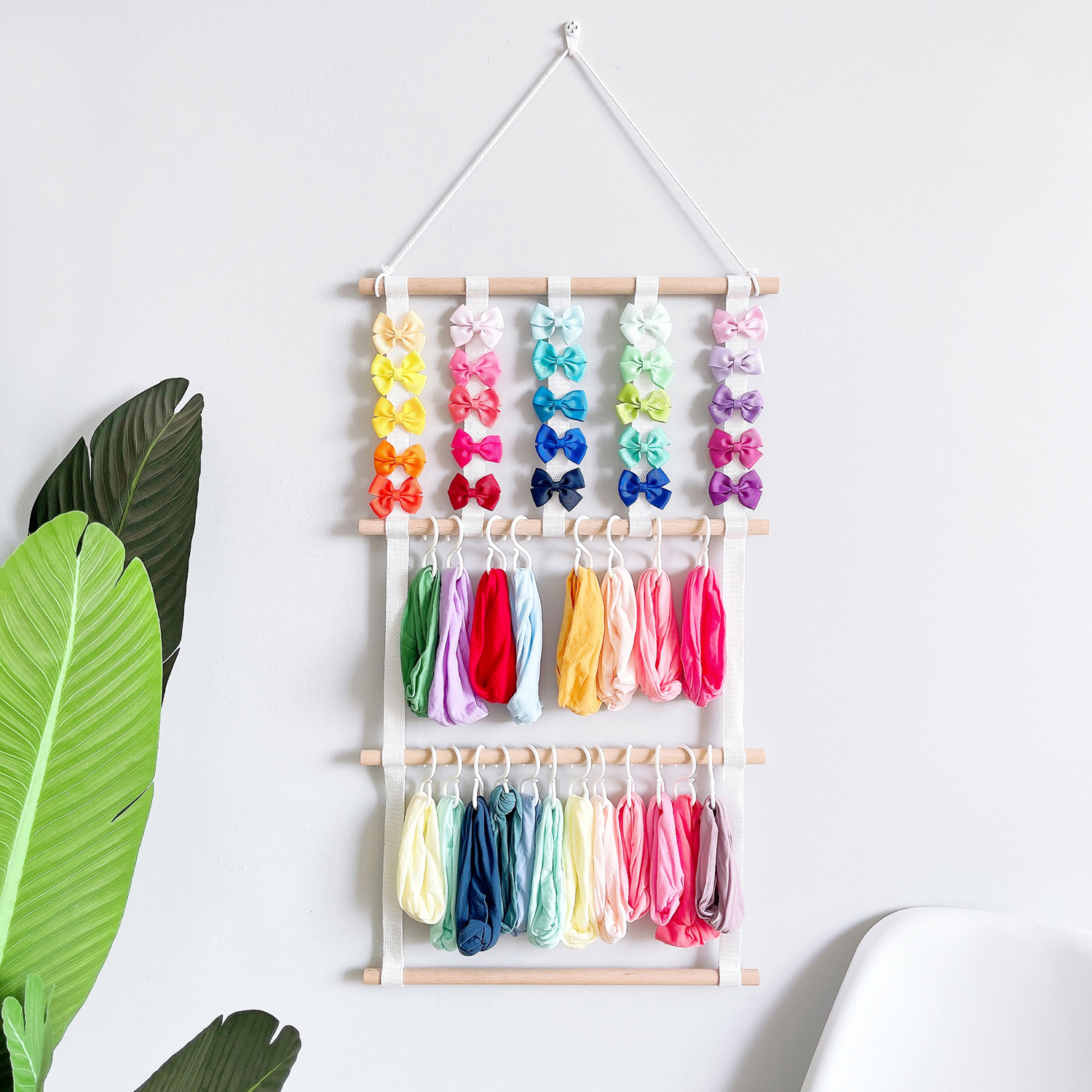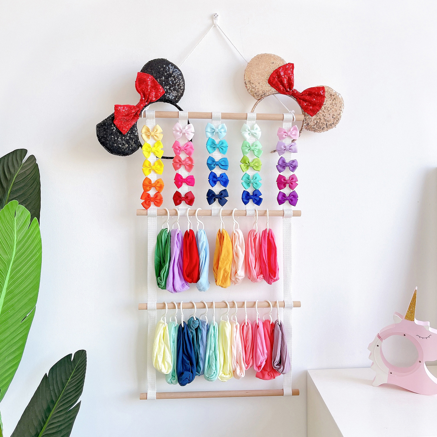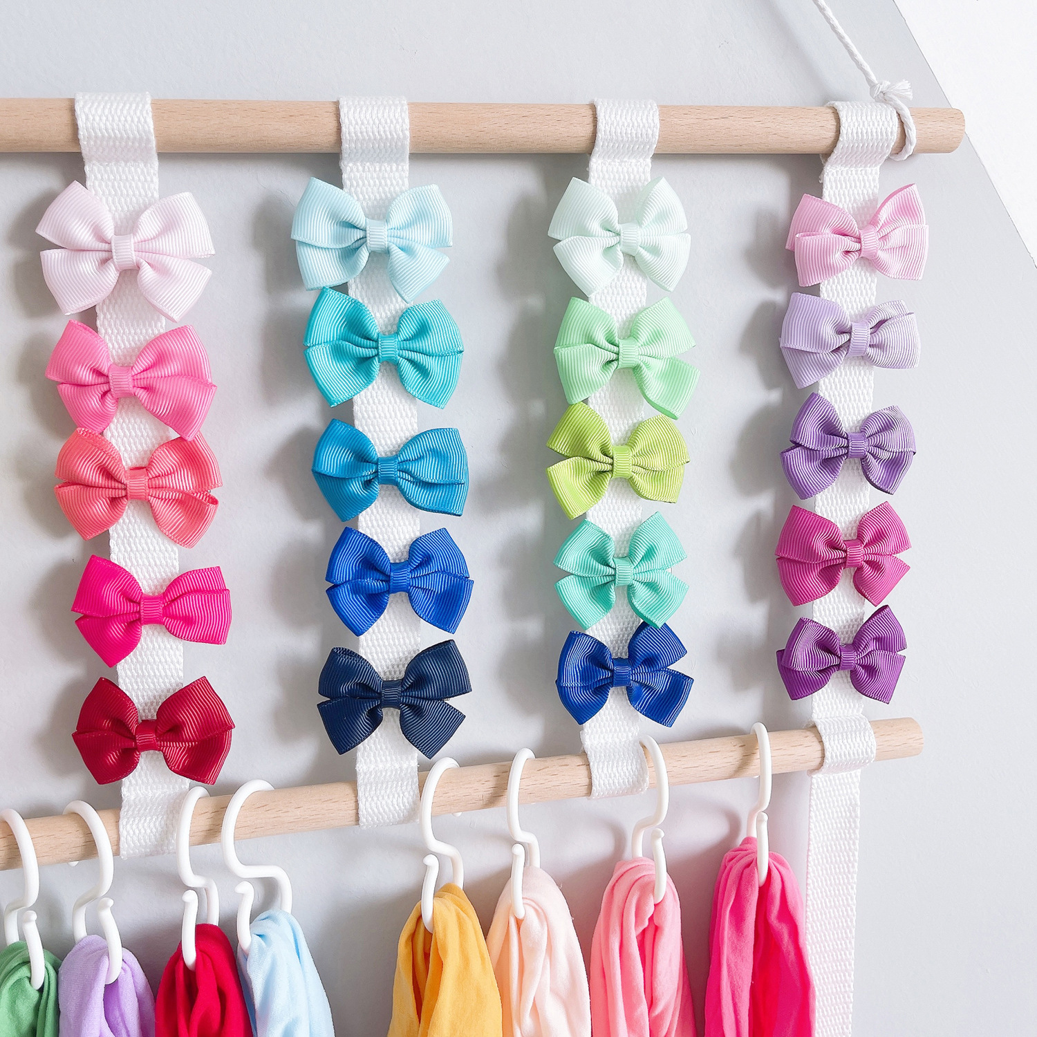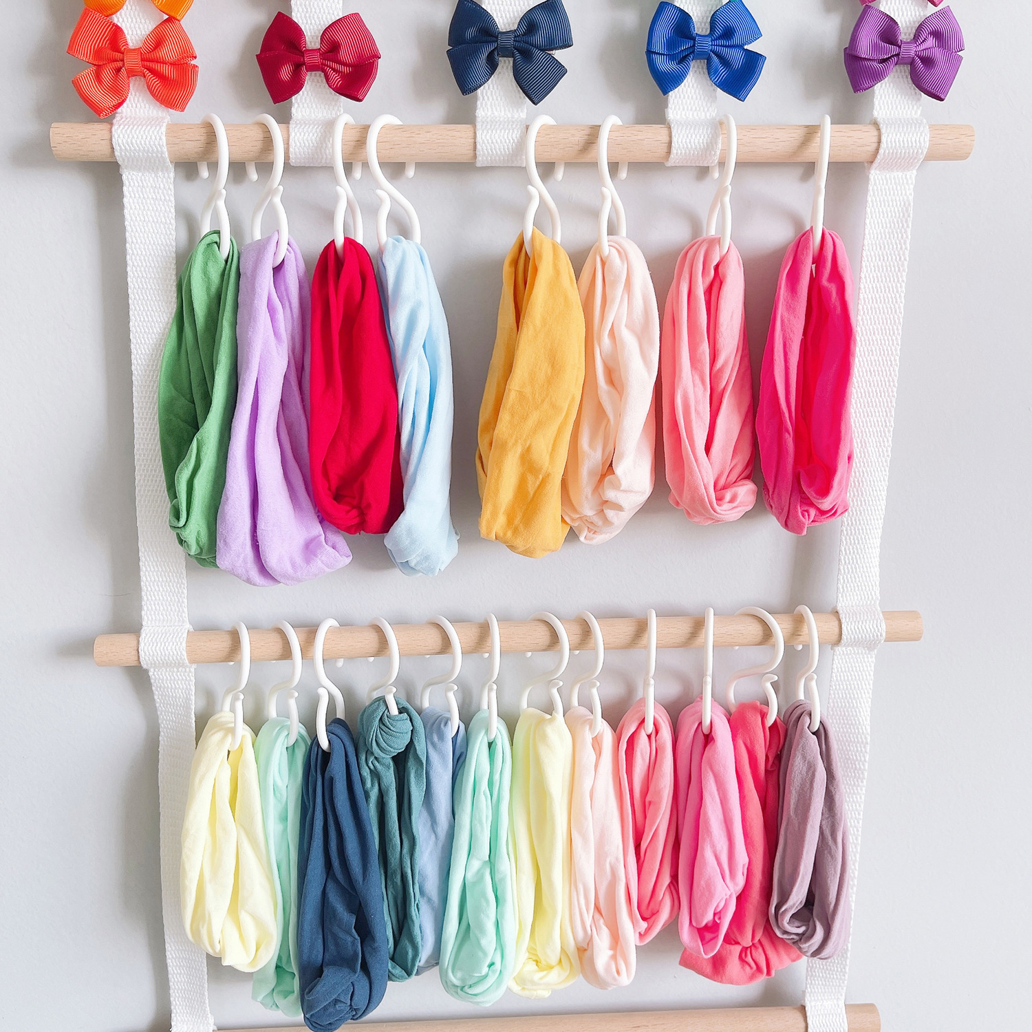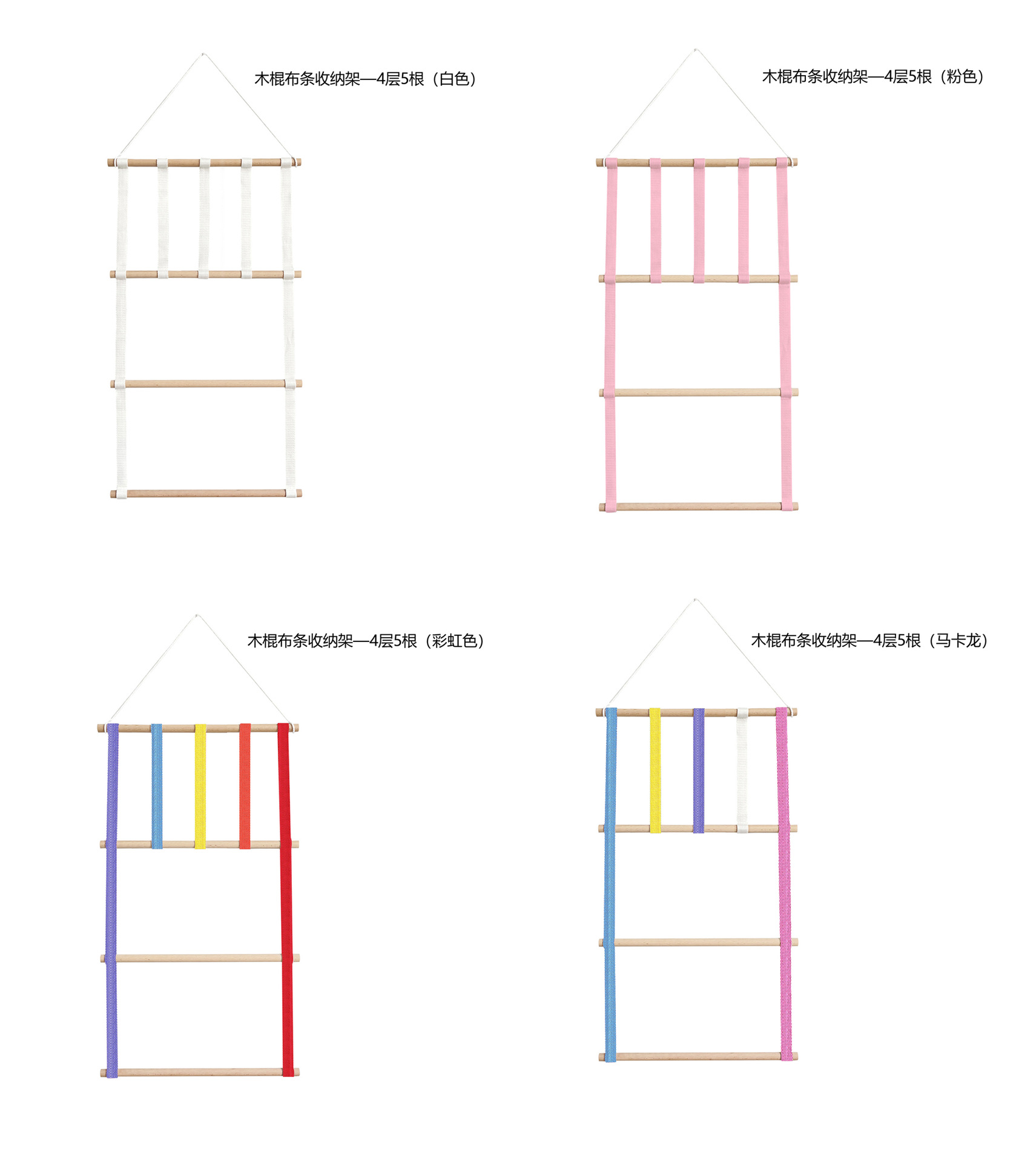 ins decoration nordic style ribbon wooden stick children's hair clips hair accessories storage belt wall hanging headdress cable tie 4 layers 5 pieces