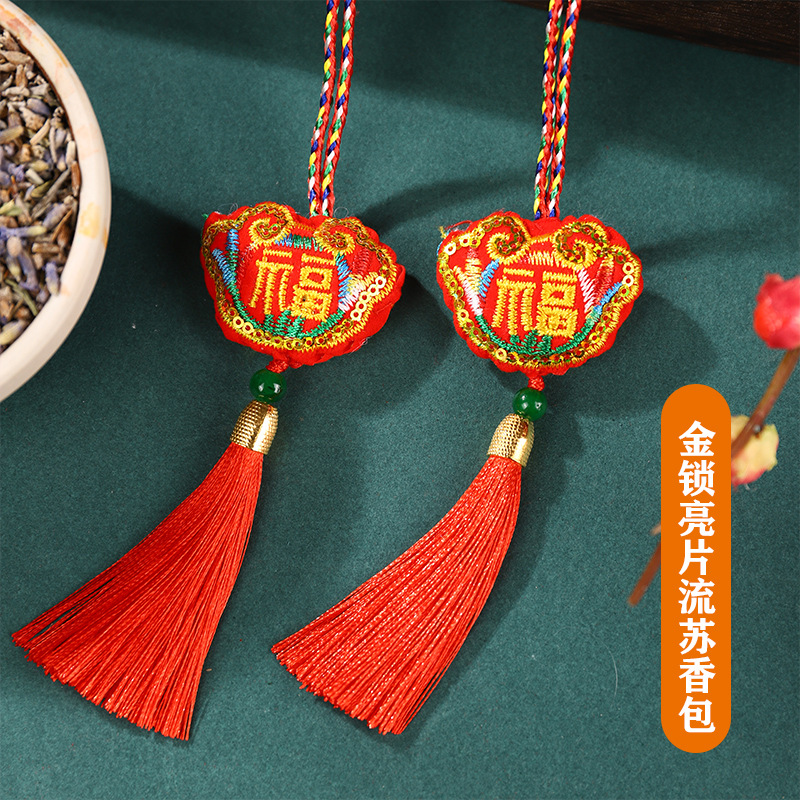 shuangfu golden lock yc-sequined tassel sachet