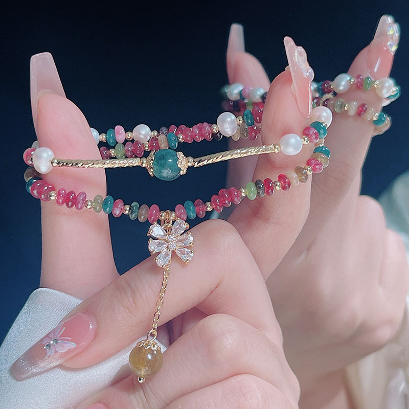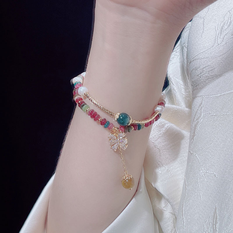 320-colored agate flower bracelet
