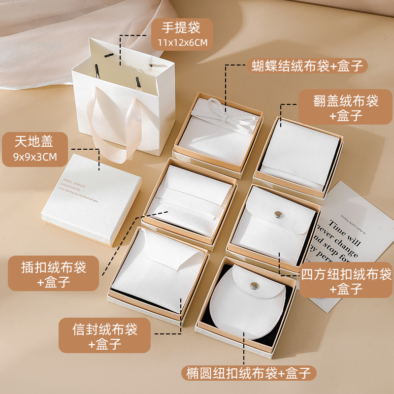 white powder tiandigai 9*9*3 + apricot flannel bag; oval button flannel bag + box