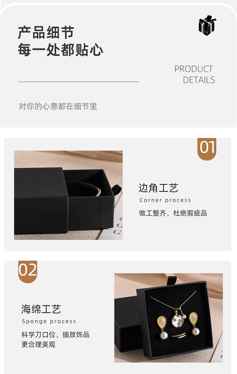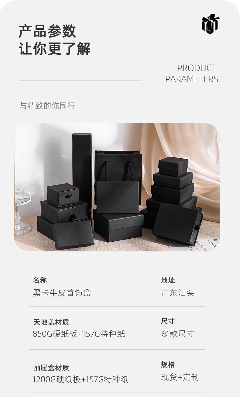 black drawer box; box 6 7.5*7.5*3.5 with sponge