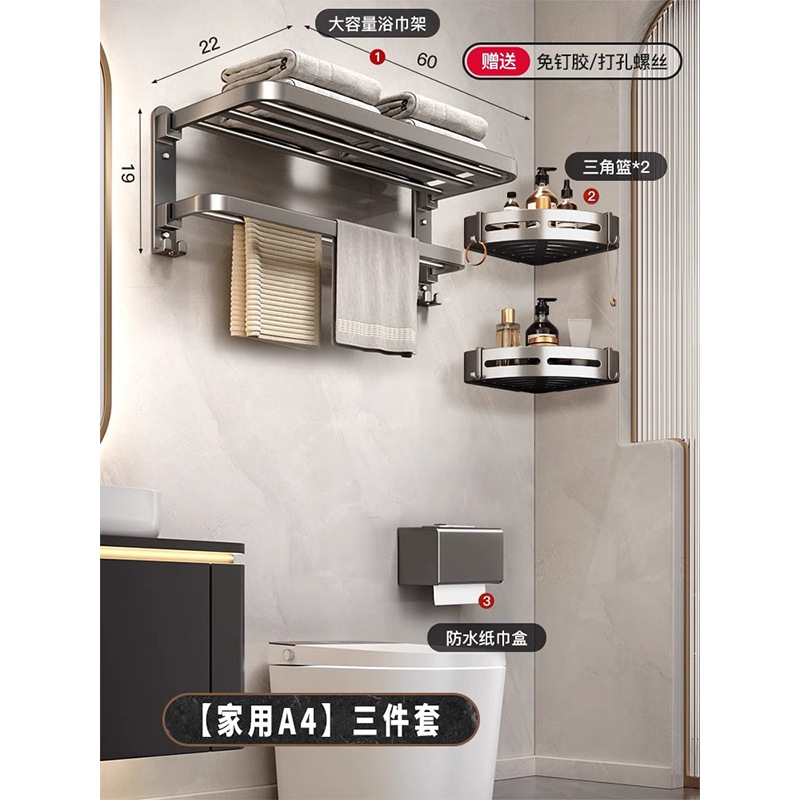 ❤95%❤select❤gun gray bath towel rack 60cm [double folding▶flat rod luxury]]