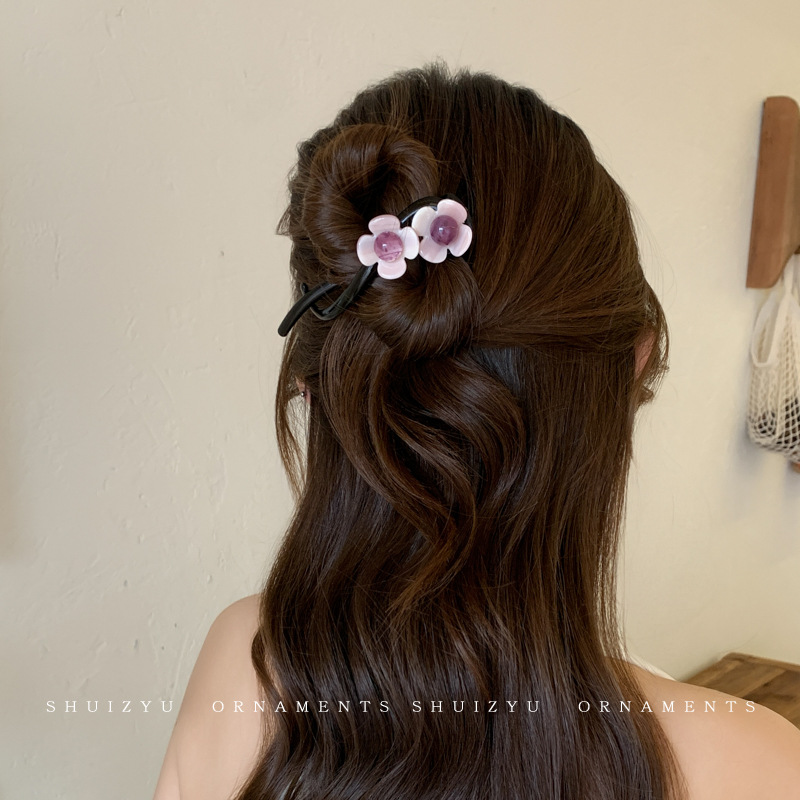 2# pink small flower banana clip.