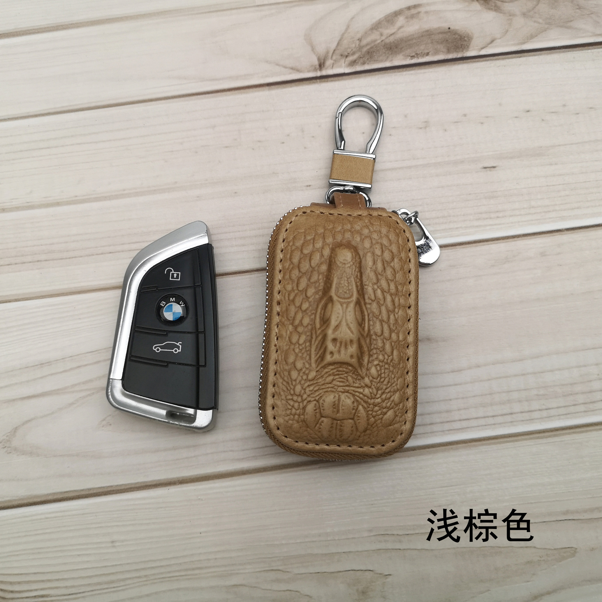 Car key case and car remote control protector made of top-grain cowhide leather.