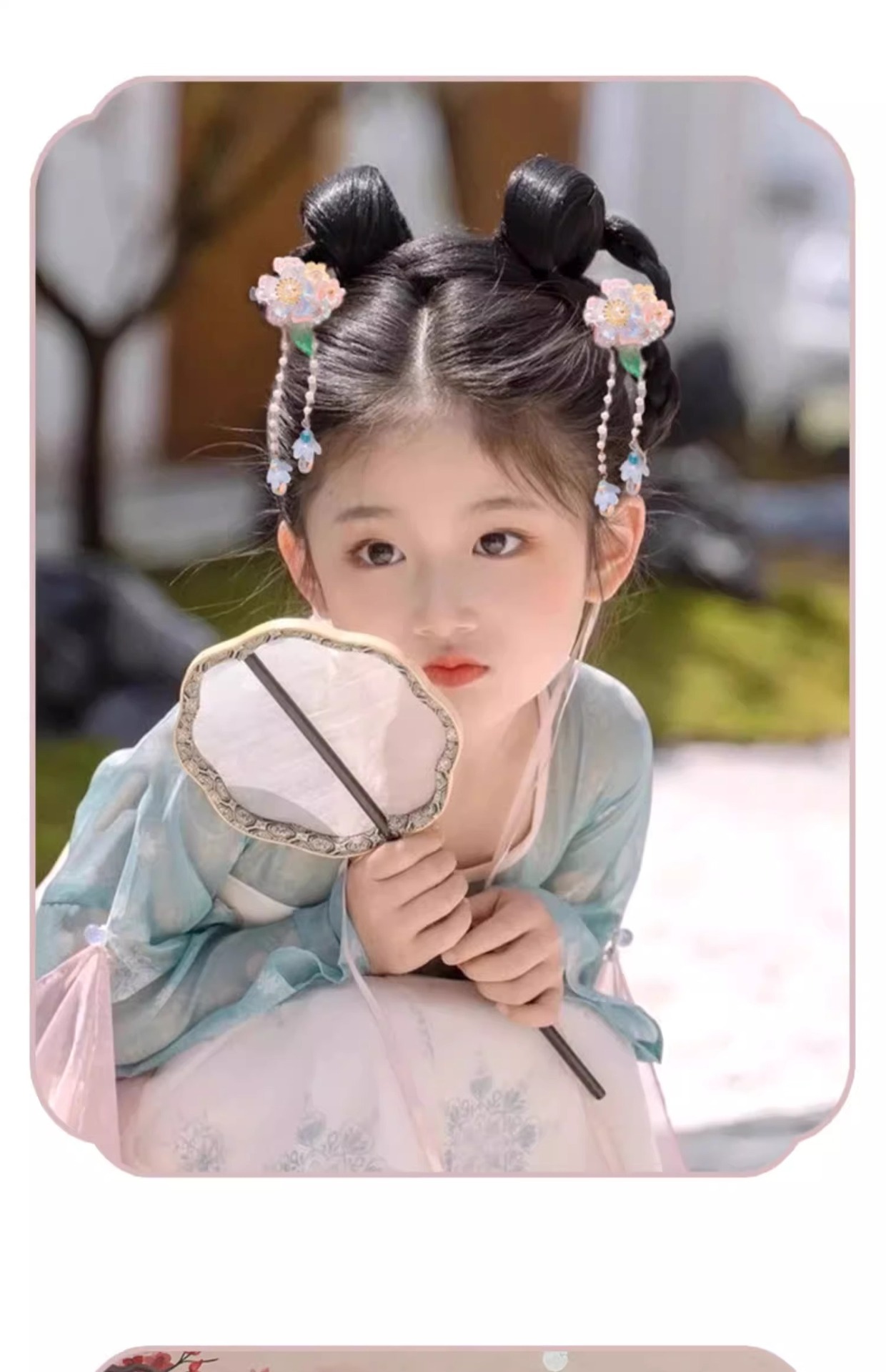 19# double jade white and green flowers three tassels.