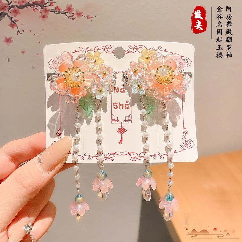 23# pink floral pearl style tassel.
