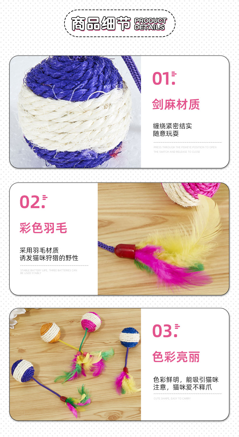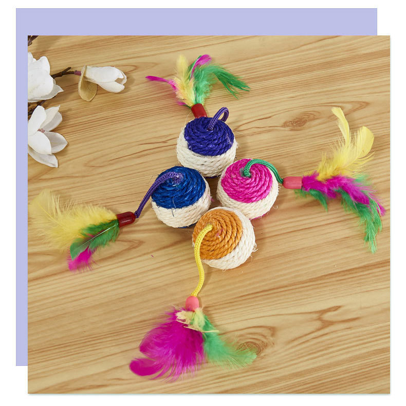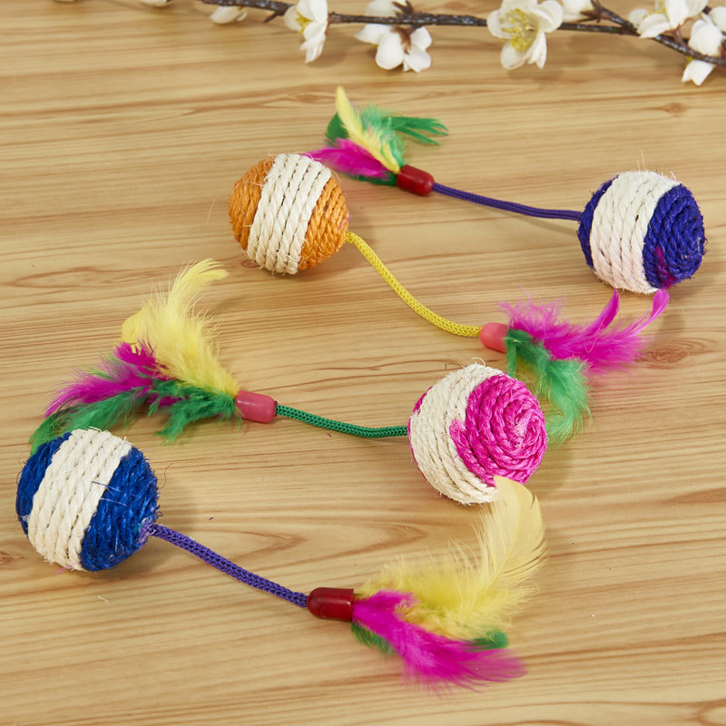 small size sisal badminton teaser toy pet supplies feather sisal mine ball toy wholesale