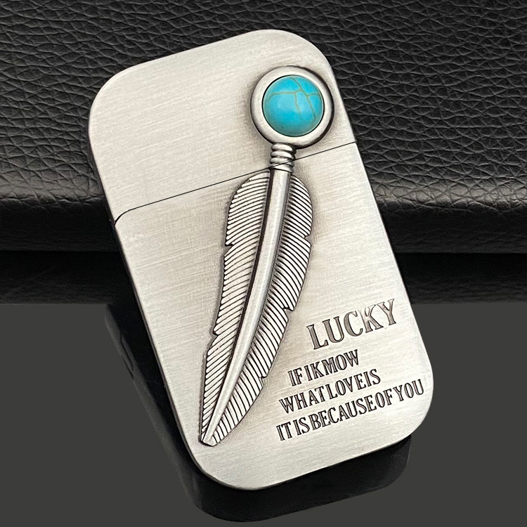 turquoise feather-natural brushed