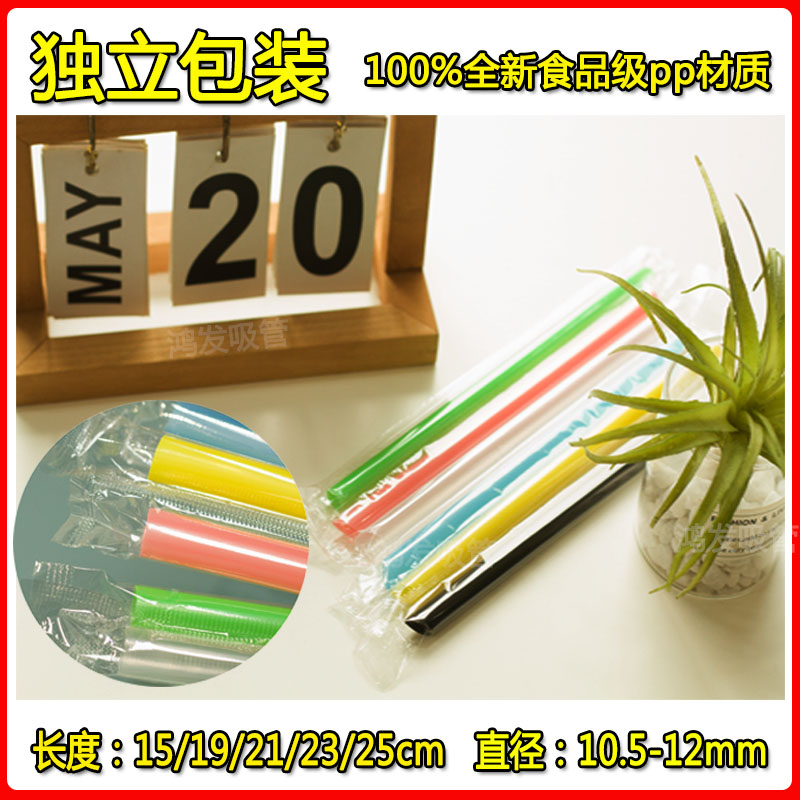 disposable straw pearl milk tea straw thick transparent fruit grain single independent packaging long hardened plastic big straw