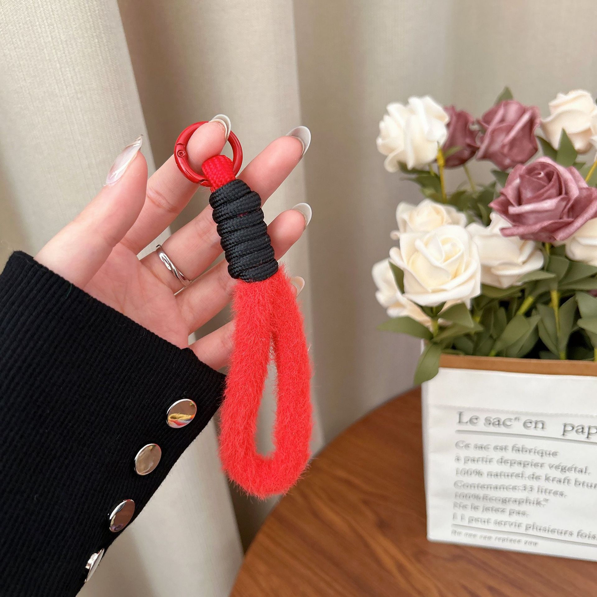 plush single ring-[bright red + black]]