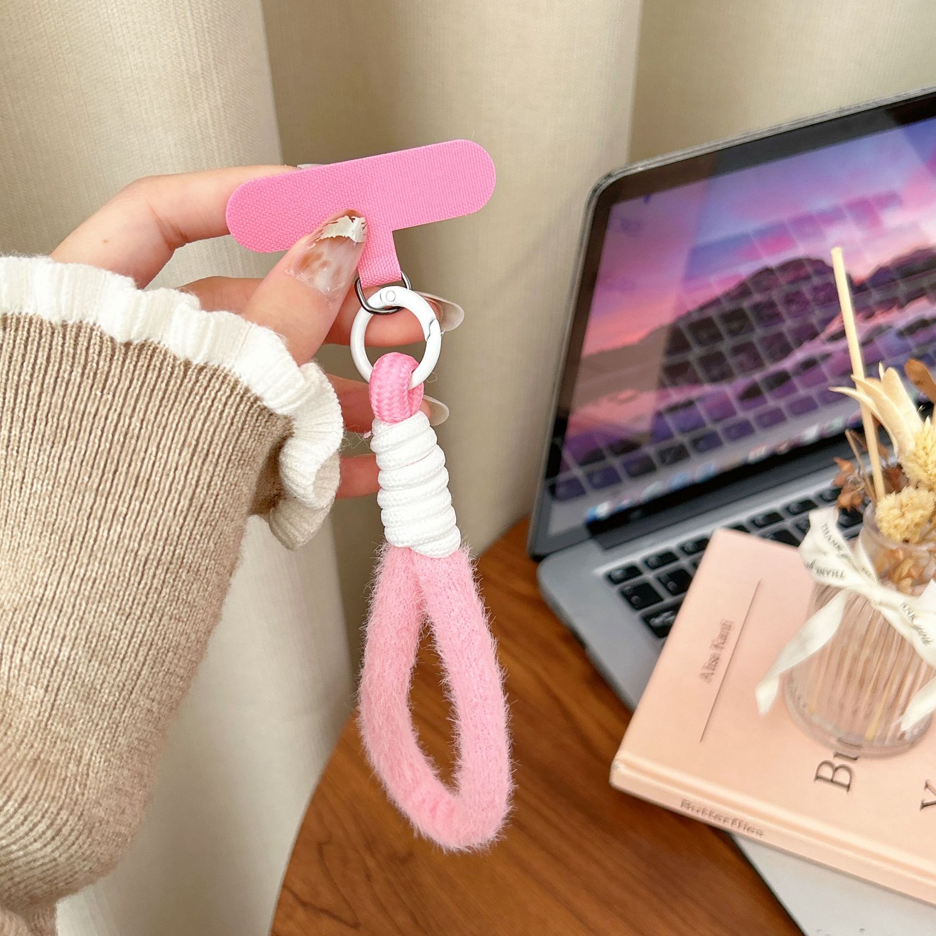 plush single ring-[pink & white]]