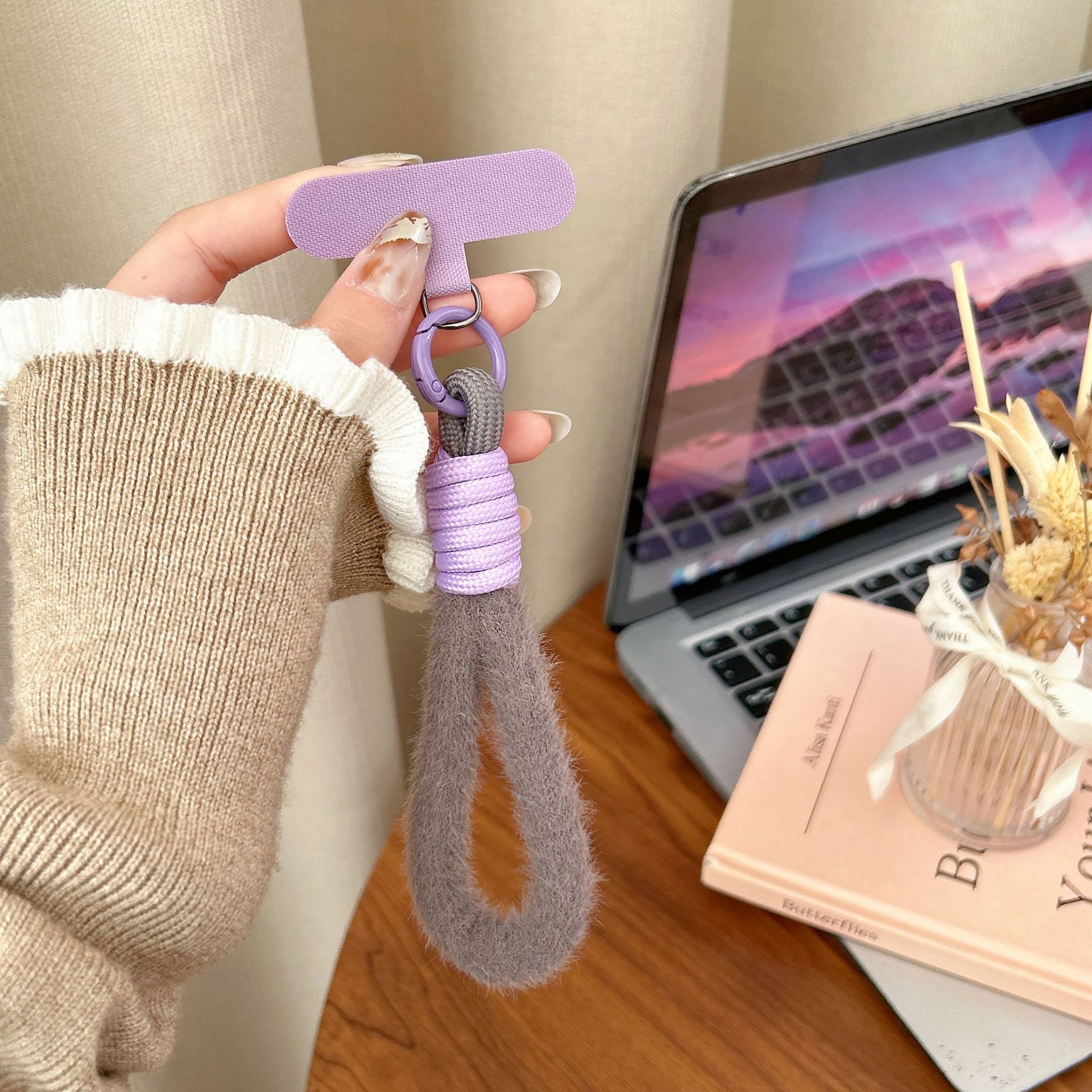 plush single ring-[gray + purple] + light purple t-shaped gasket