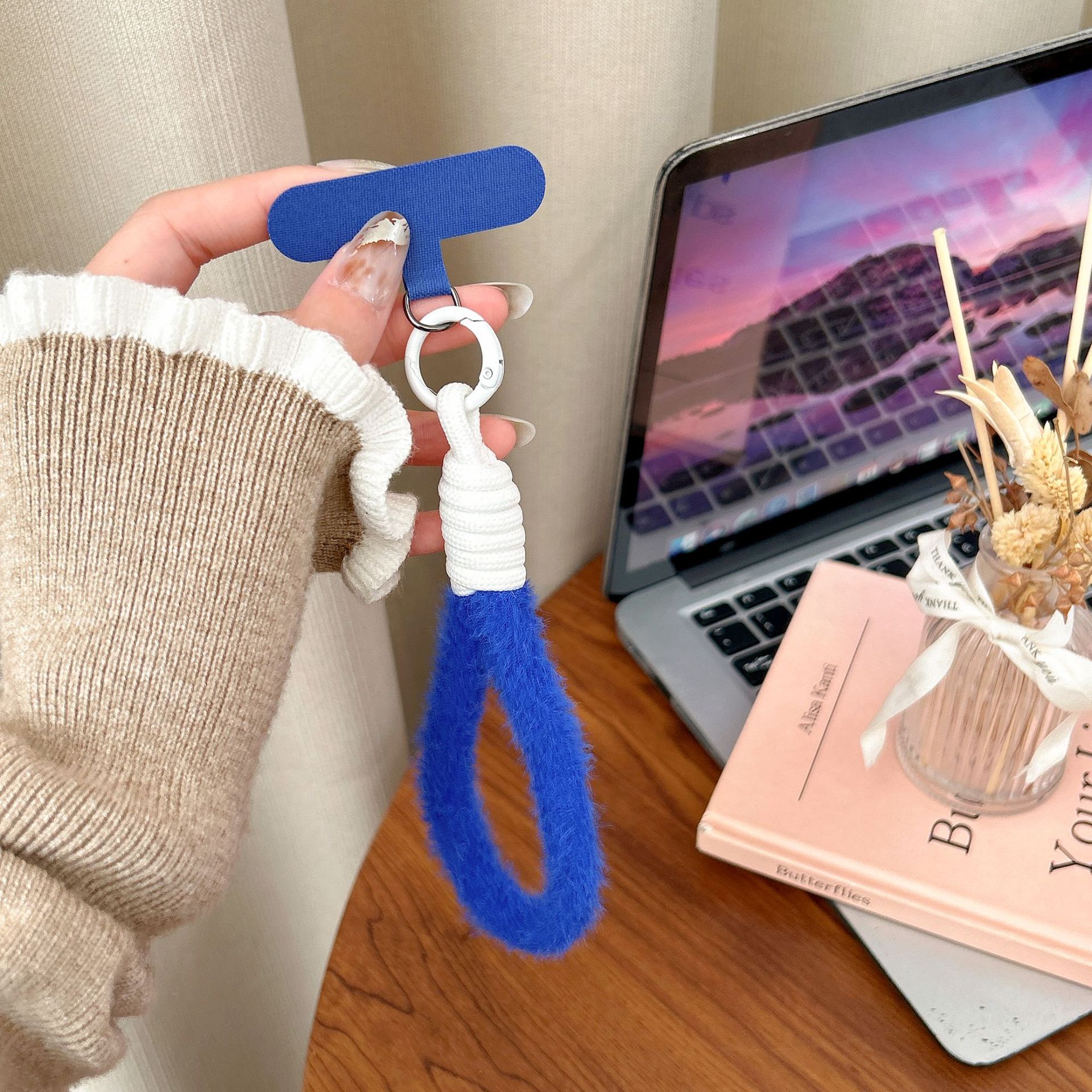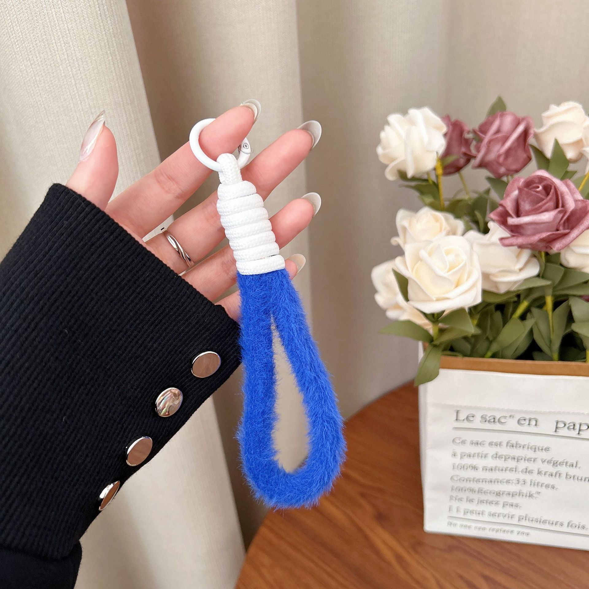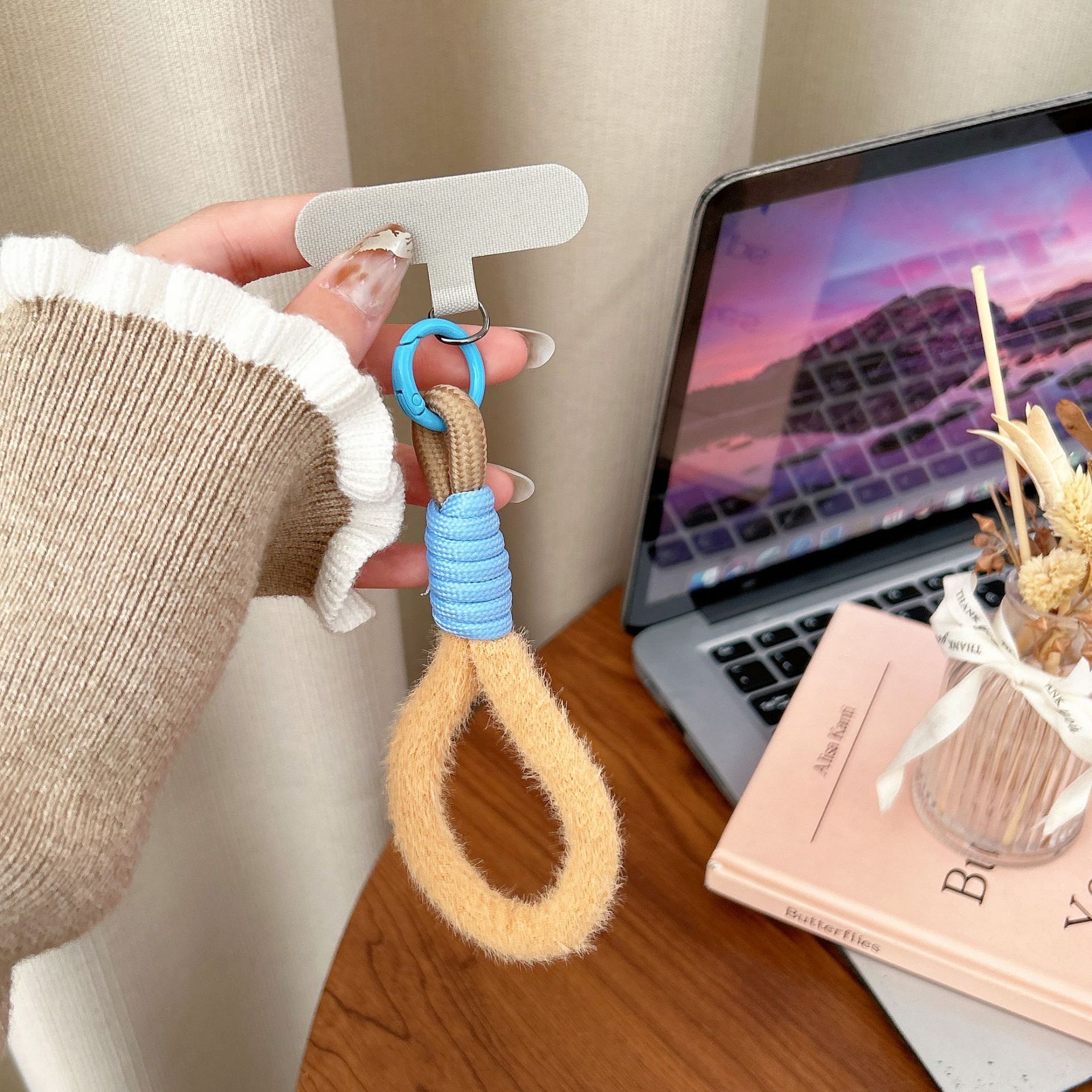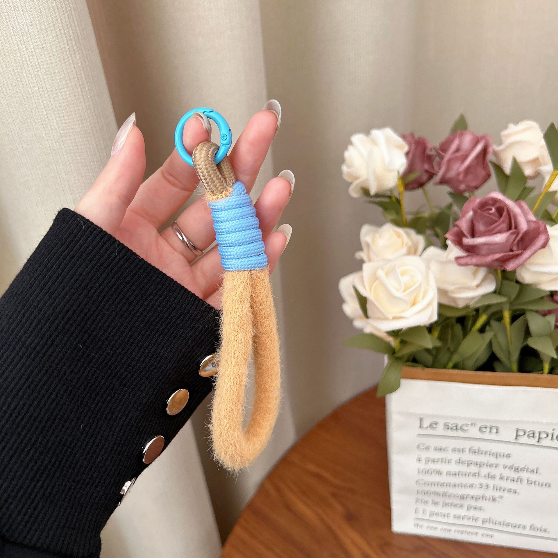 plush single ring [light brown + blue]]