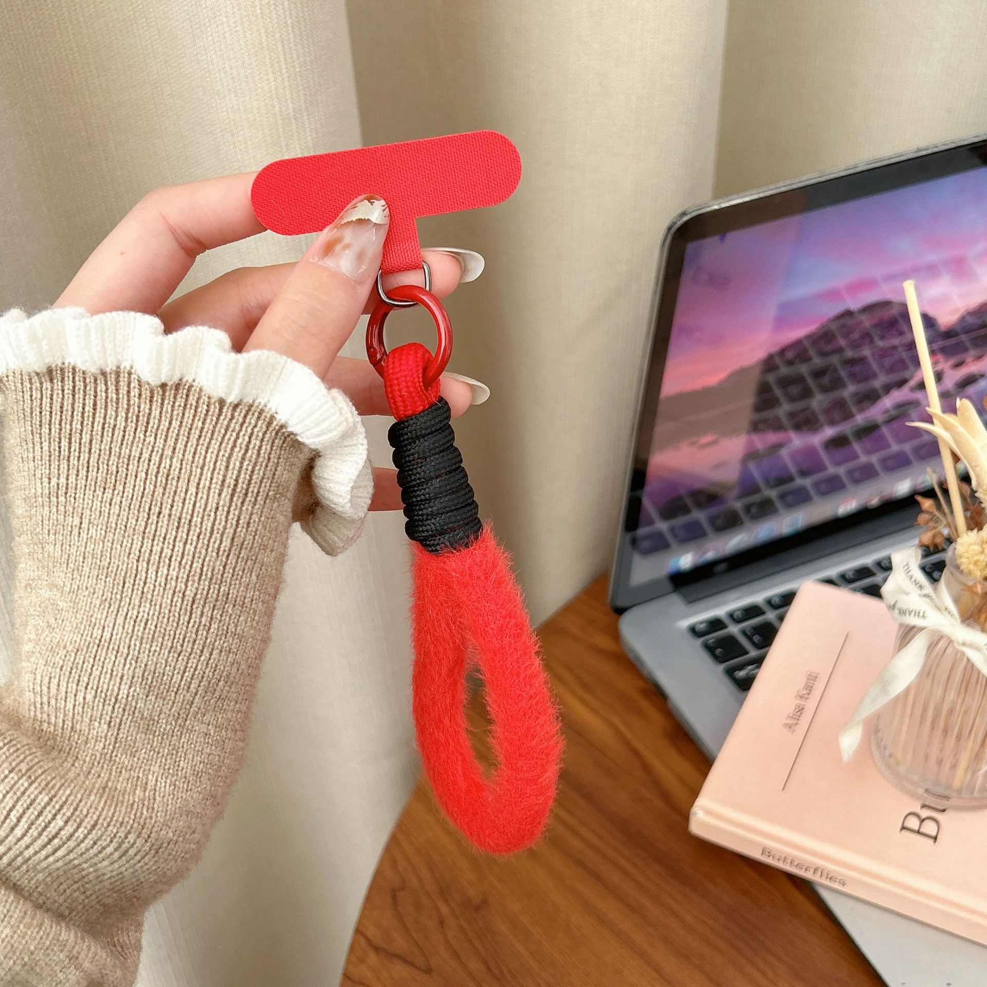 plush single ring-[red + beige]]