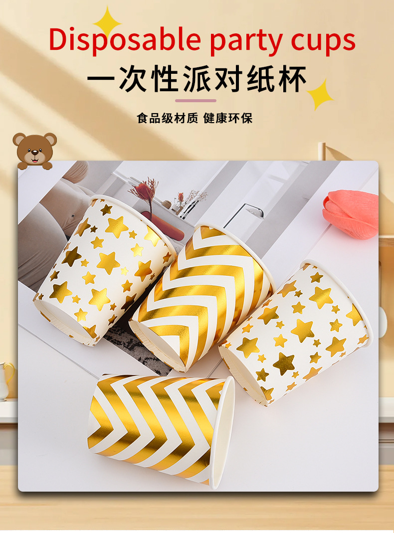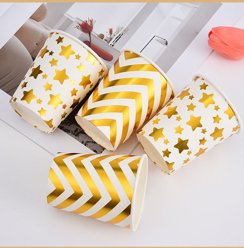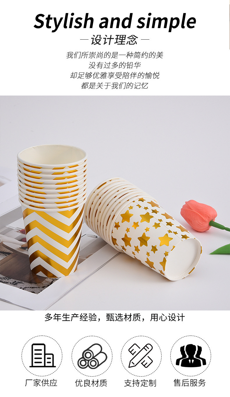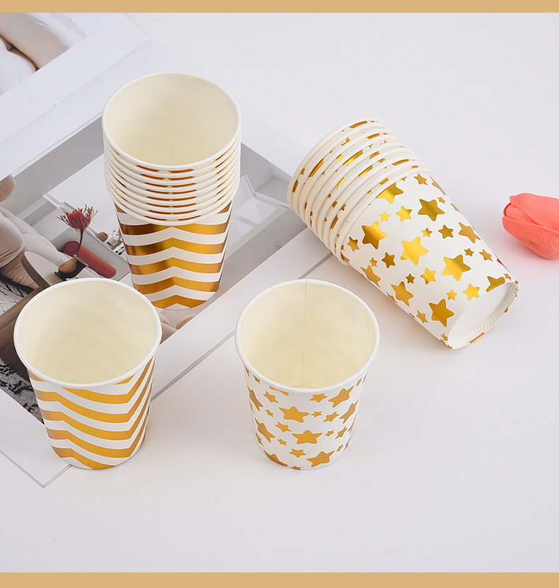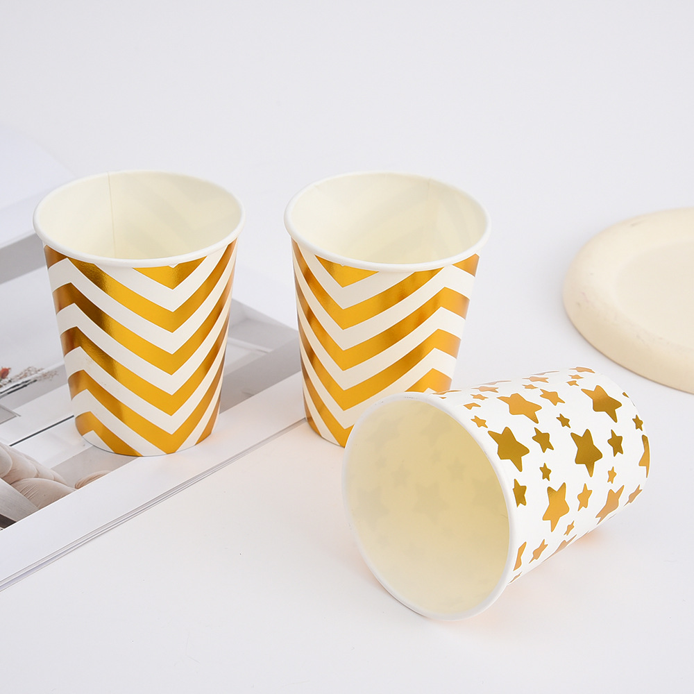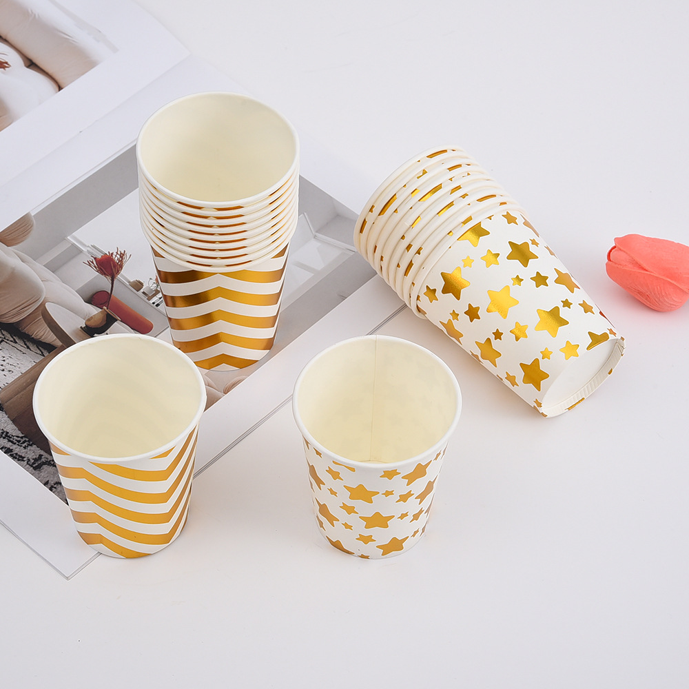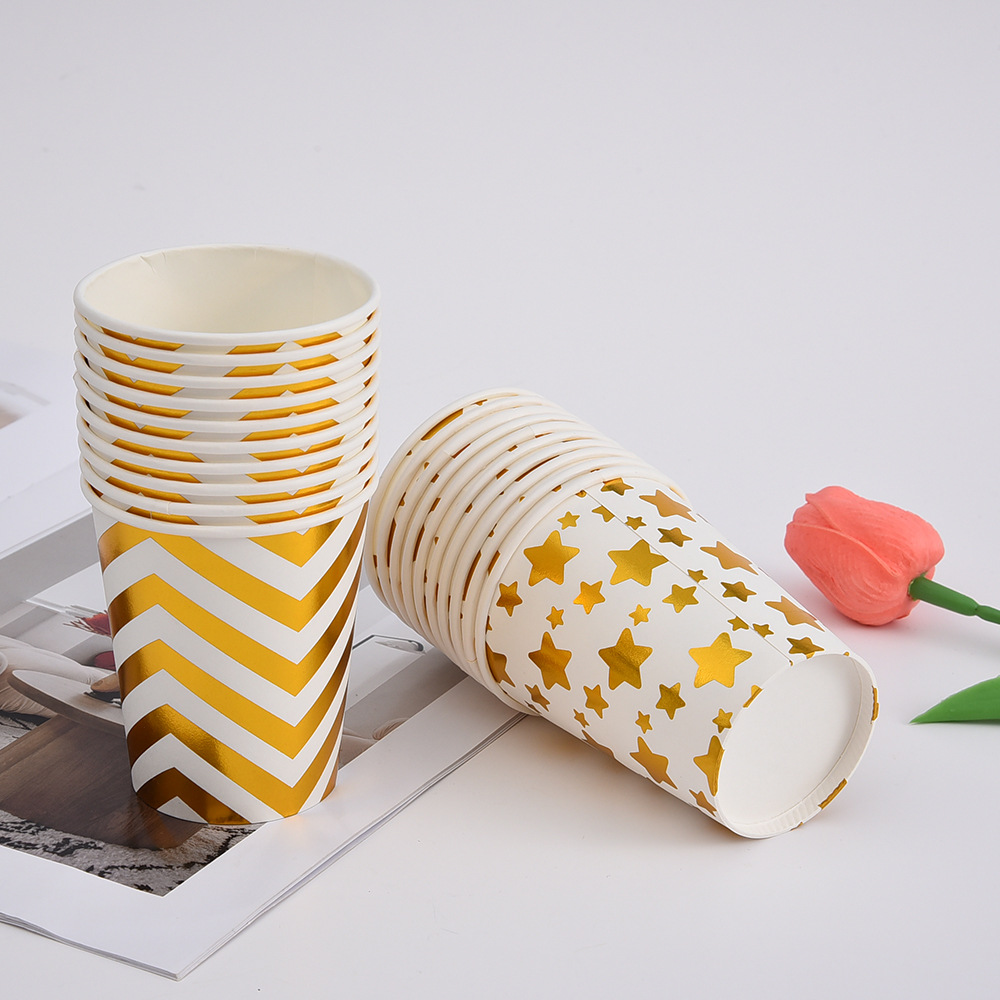 factory wholesale disposable paper cups multiple bronzing printing striped wave paper cups 10 pack printable logo