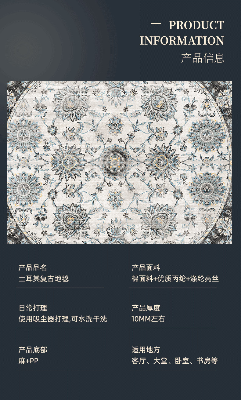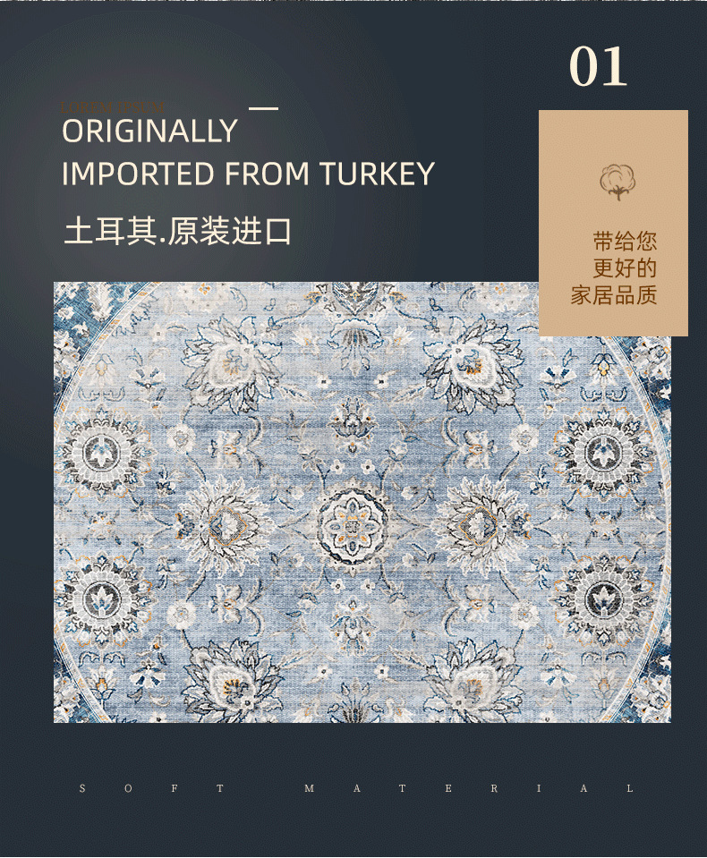 american persian turkish vintage carpet cross-border ethnic style tpe bohemian living room non-slip carpet floor mat