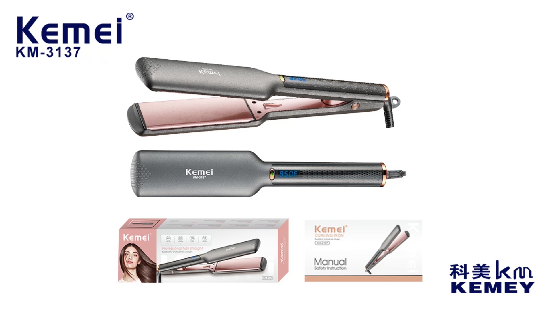 kemei km-3137 fast heating six-gear temperature adjustment temperature display splint hair straightener