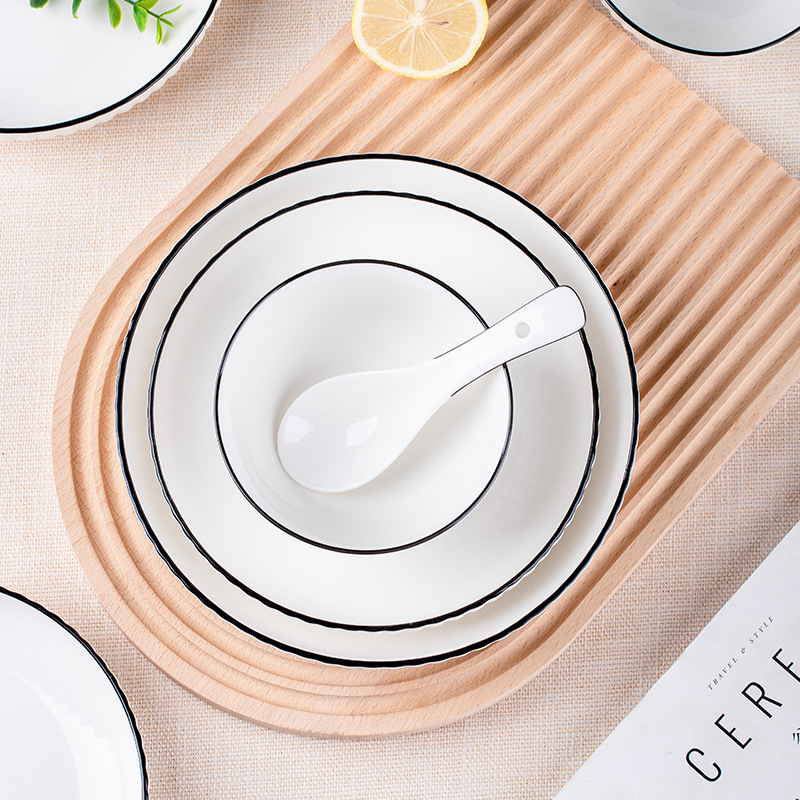 black line vertical pattern 8-inch plate 4