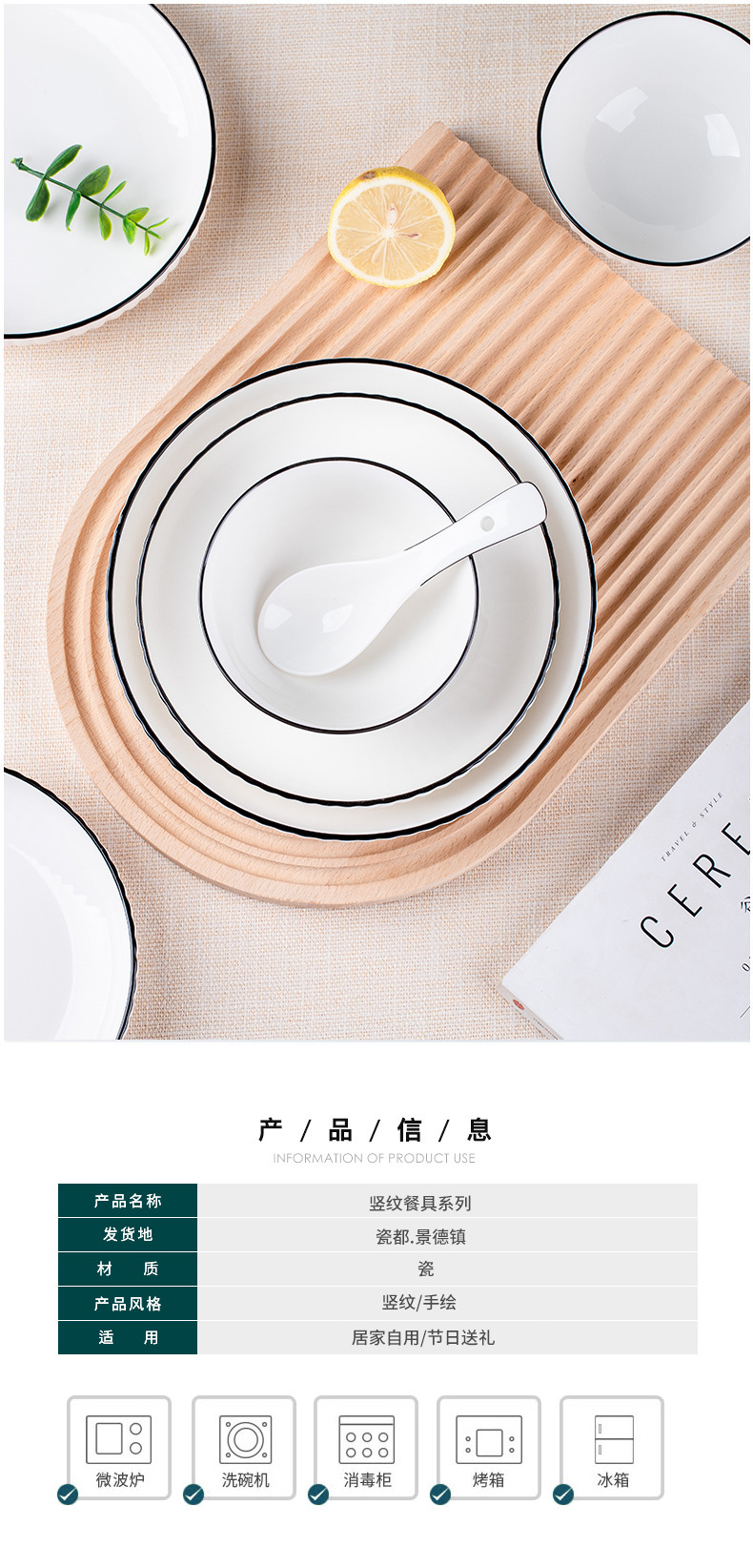 black line vertical pattern 8-inch plate 2