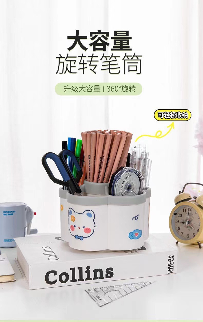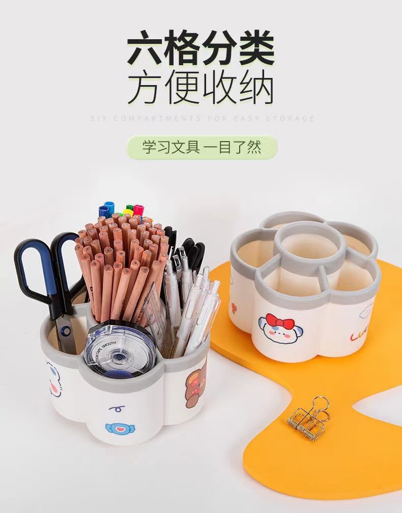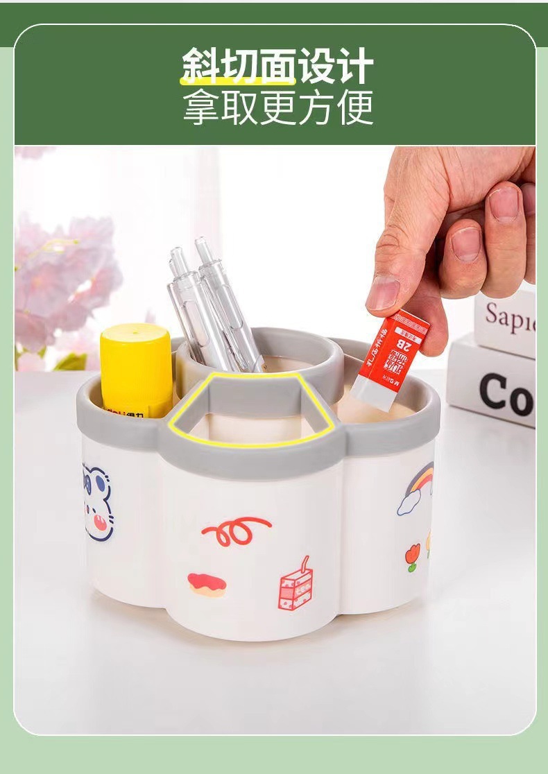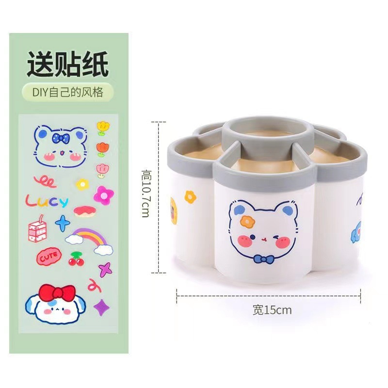 [rotating pen holder independent paper box with stickers]]