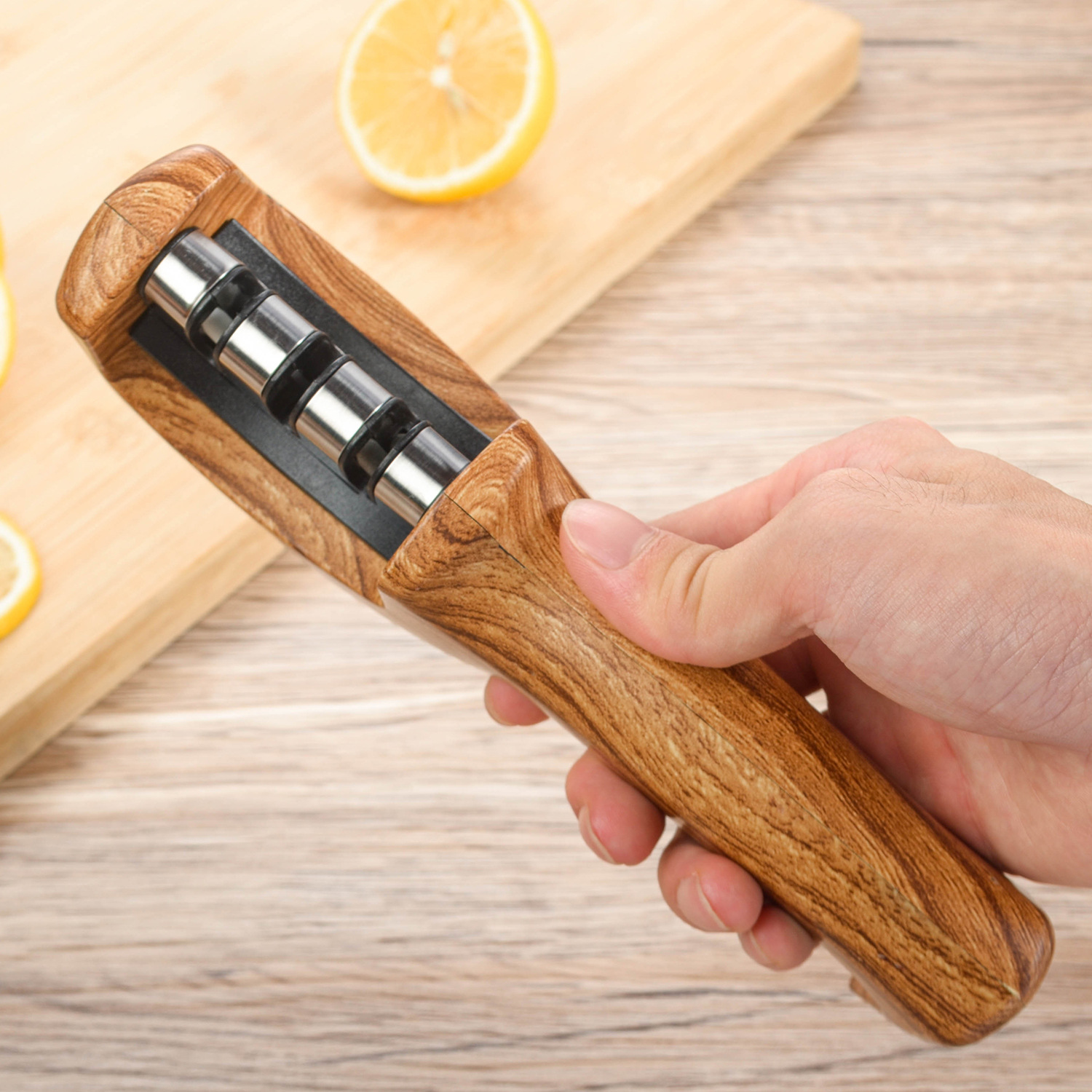 wood grain + black sharpener