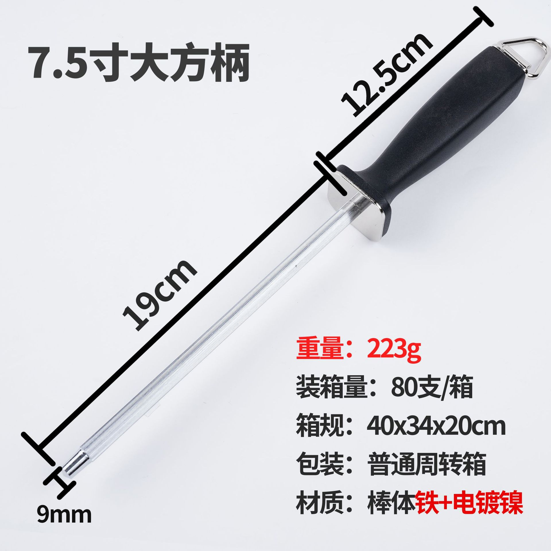 8-inch square handle sharpening steel