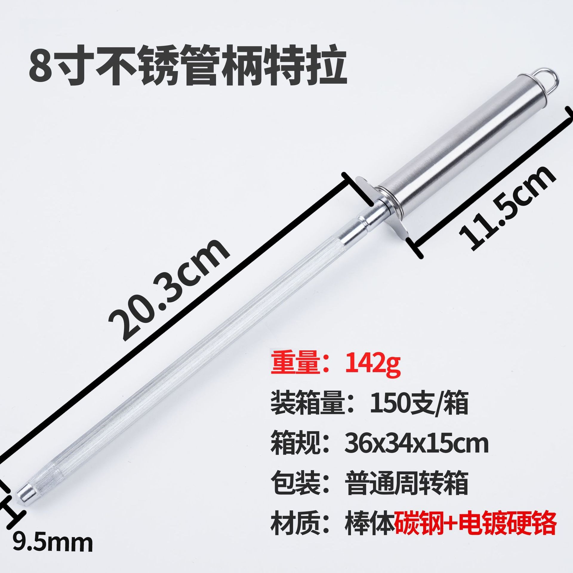 8-inch stainless steel tube handle sharpening steel
