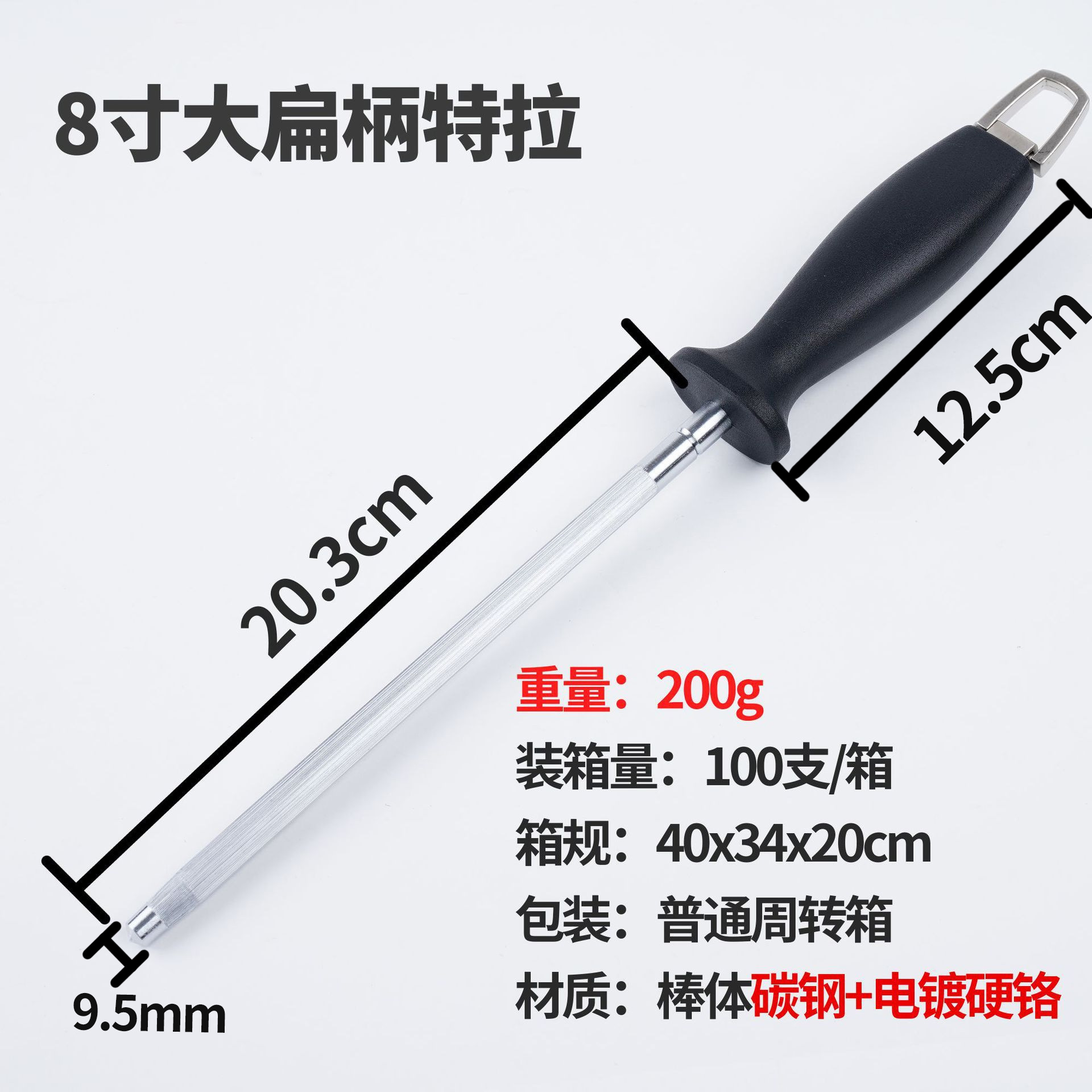 8-inch flat handle sharpening steel