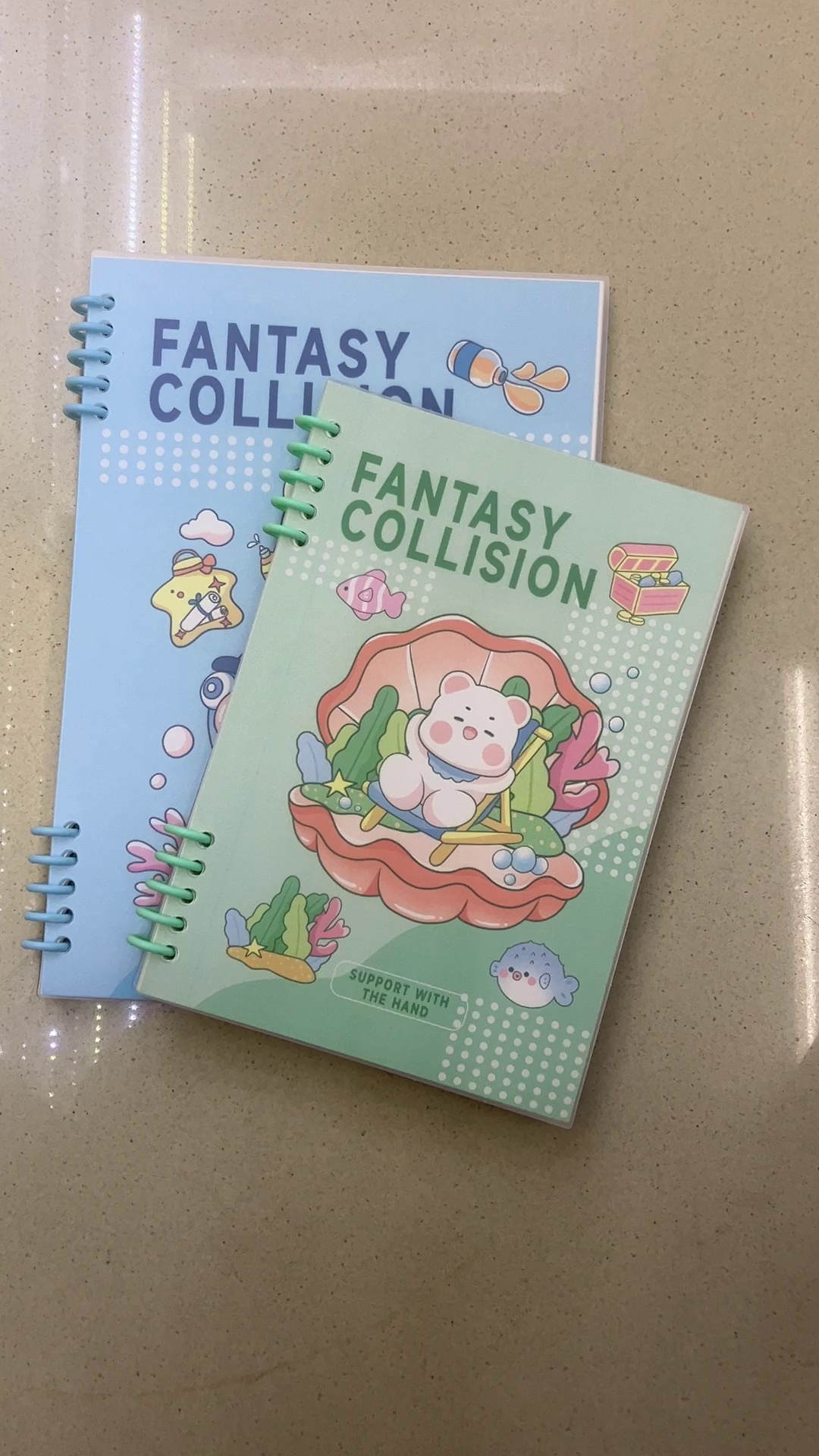 Dear friends, I accidentally discovered these two treasure notebooks! The one on the left is printed with "ADOLESCENT GIRL", with attractive beauty illustrations that seem to take us into the dream world of a teenage girl. The one on the right, "FANTASY COLLISION", is so adorable that it's illegal, with a bear lounging comfortably in a shell, surrounded by elements such as small fish and treasure chests, full of a sense of fairy tales.